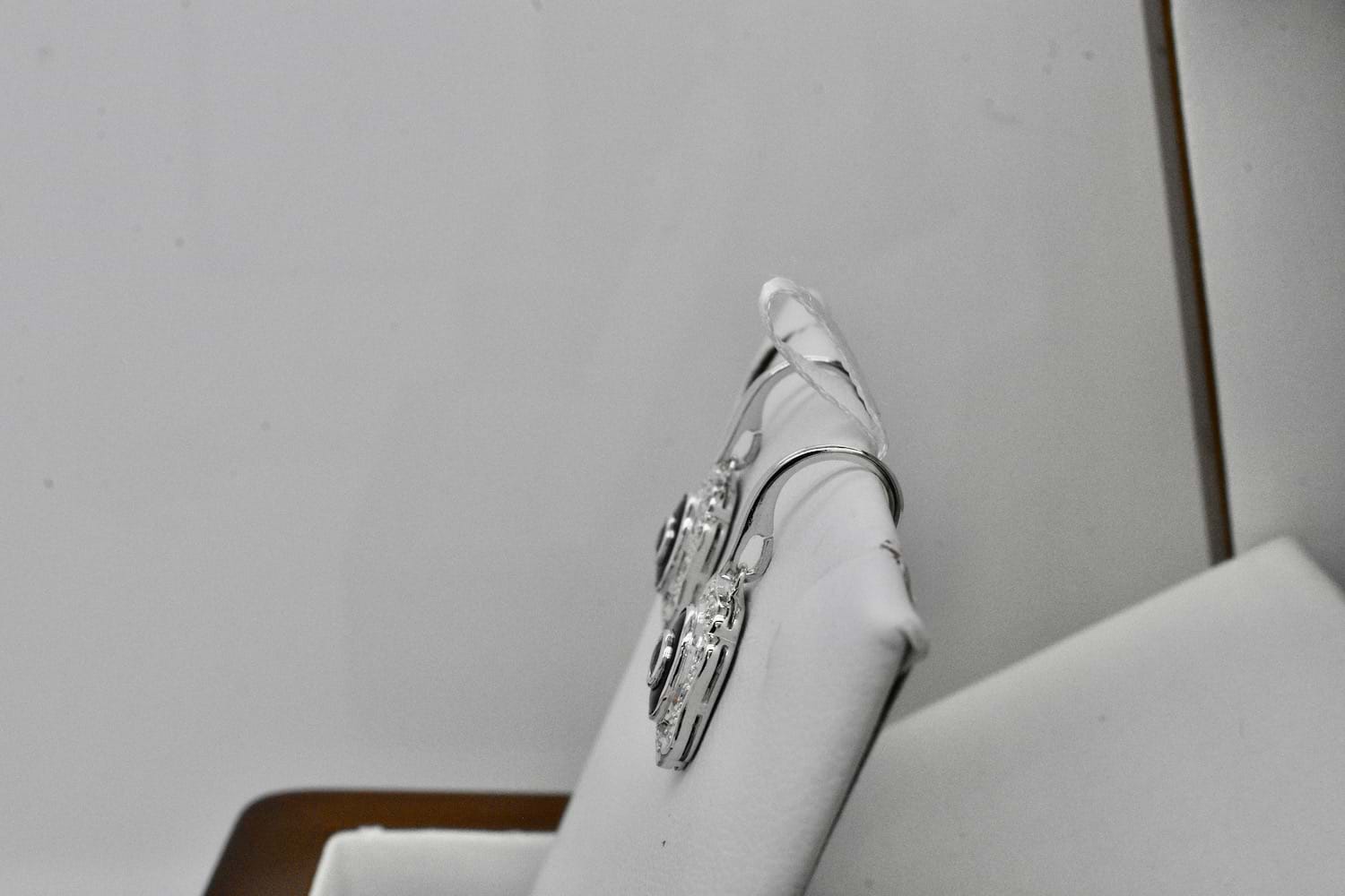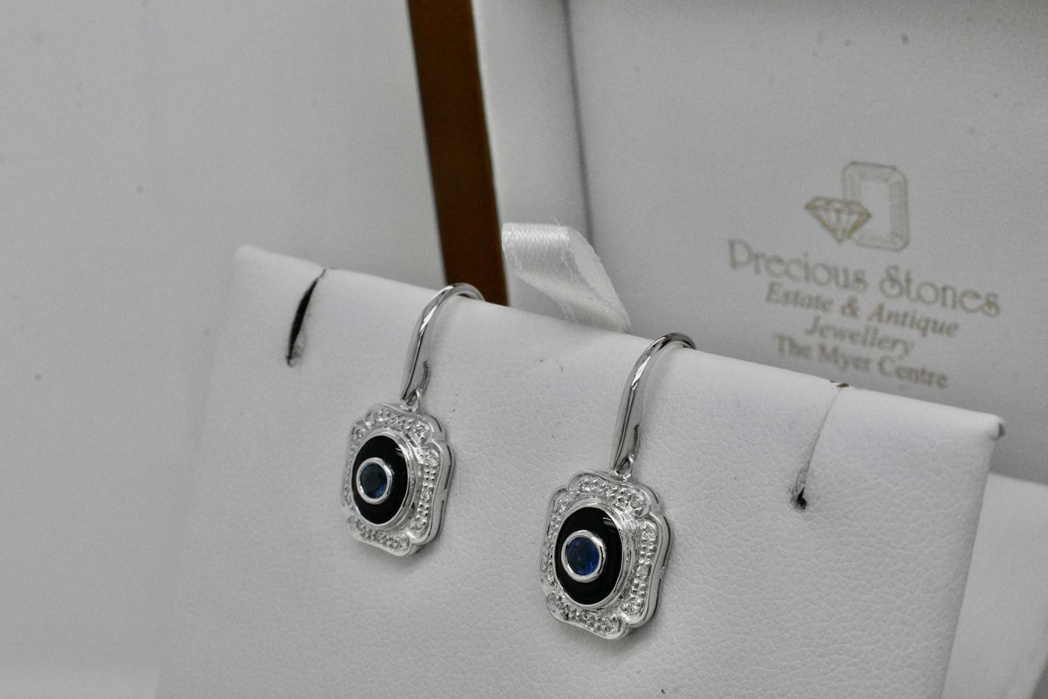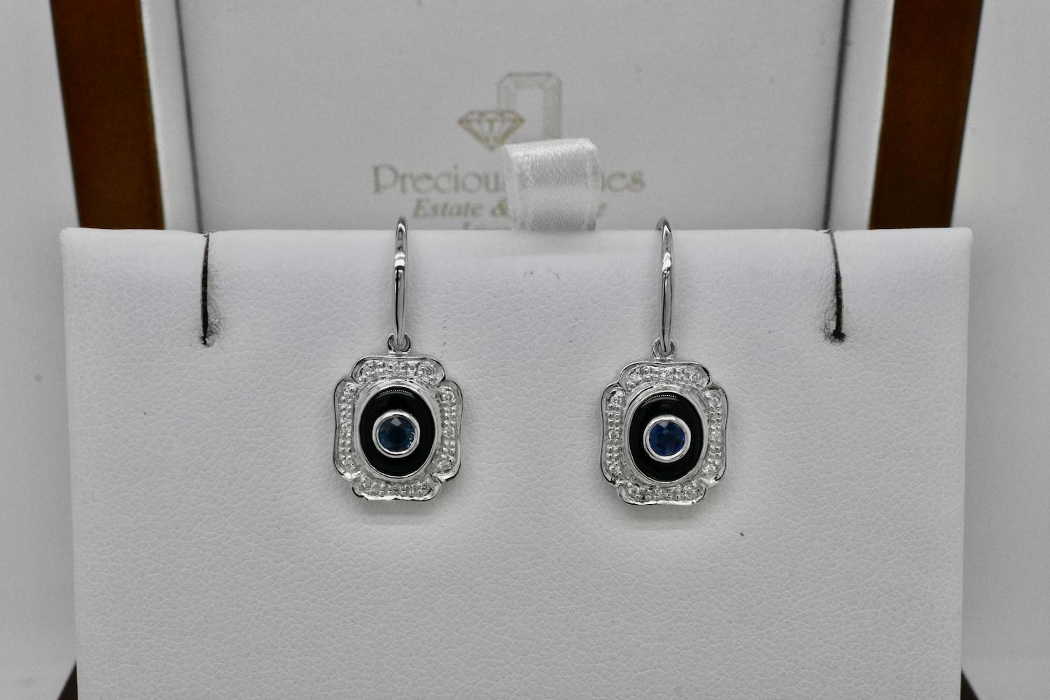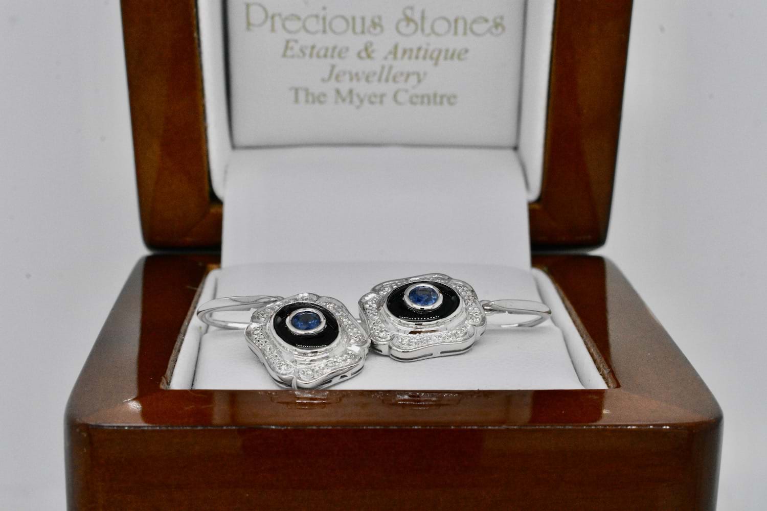 SOLD 9ct White Gold Onyx, Sapphire & Diamond Earrings