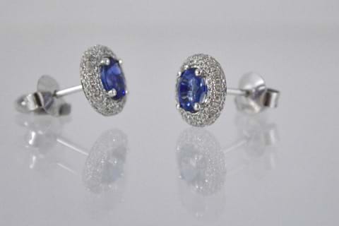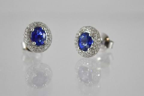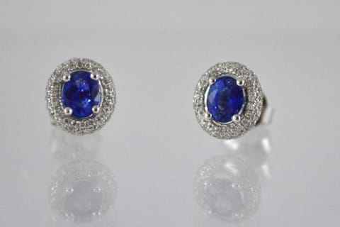 These beautiful stud earrings are set in 18ct white gold and feature two bright blue Ceylon Sapphires totalling 1.05cts and are surrounded by a halo of an amazing 144 sparkling white diamonds totalling 0.31cts. Independent Valuation Supplied.