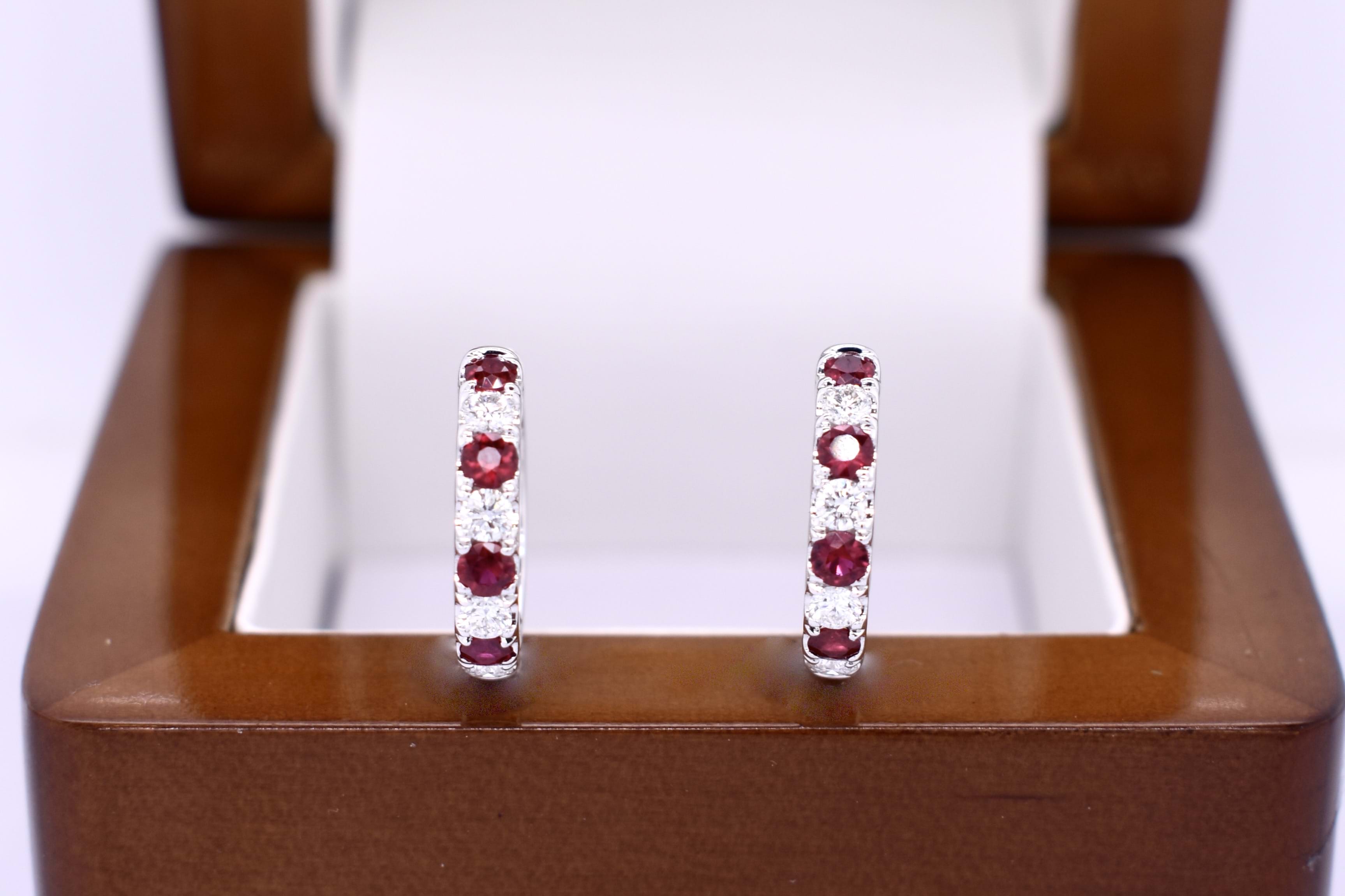 SOLD 18ct White Gold 0.79ct Ruby & Diamond Hoops