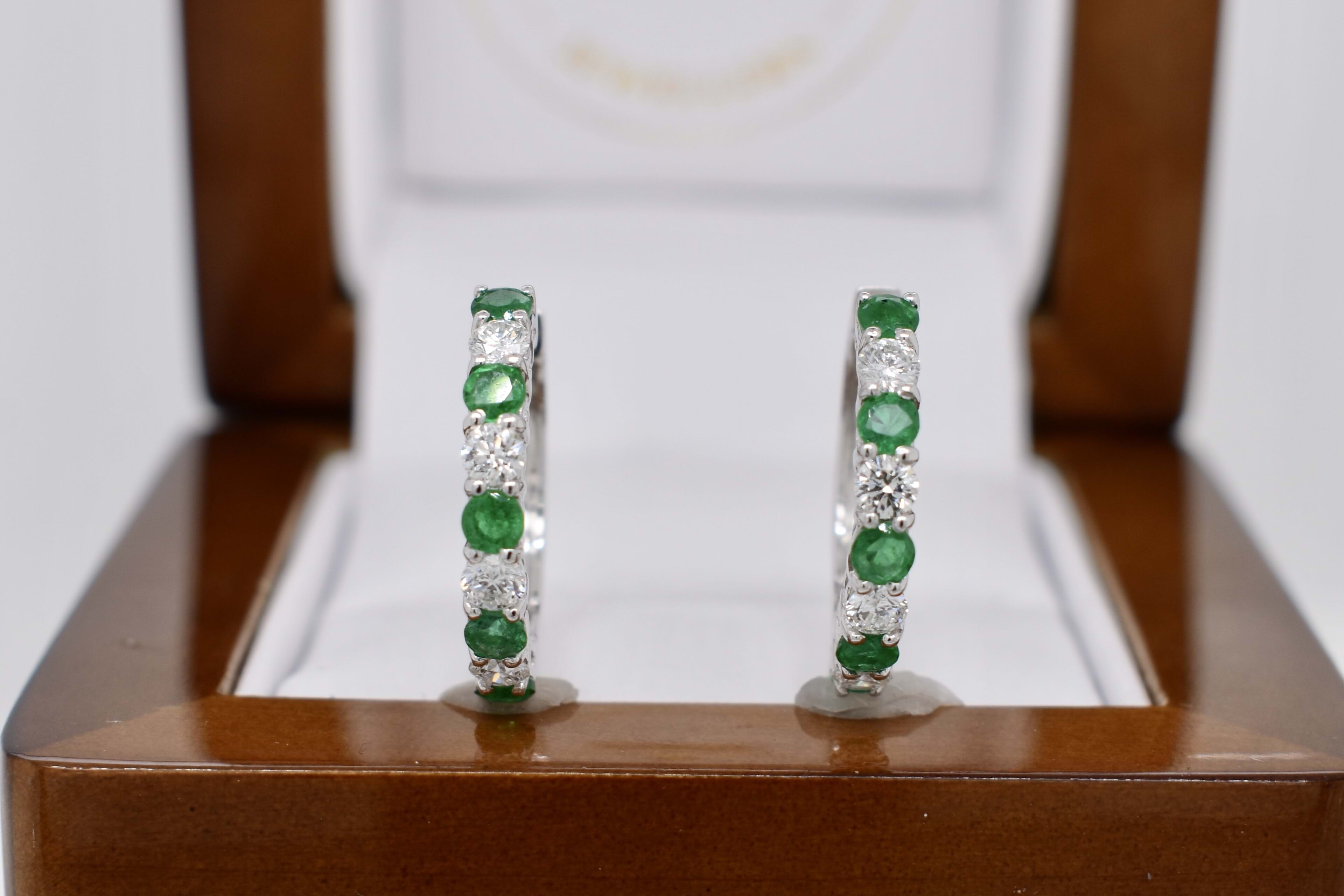 SOLD 18ct White Gold 0.50ct Emerald & Diamond Huggies