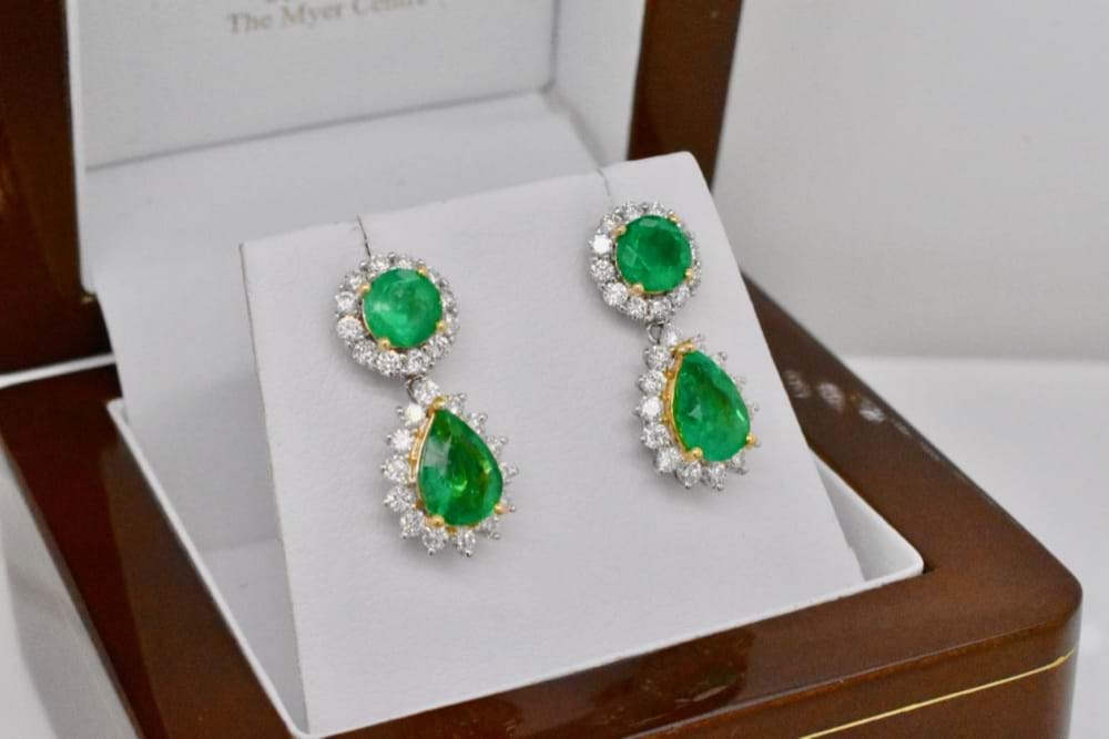 SOLD 18ct 3.35ct Natural Emerald & Diamond Earrings