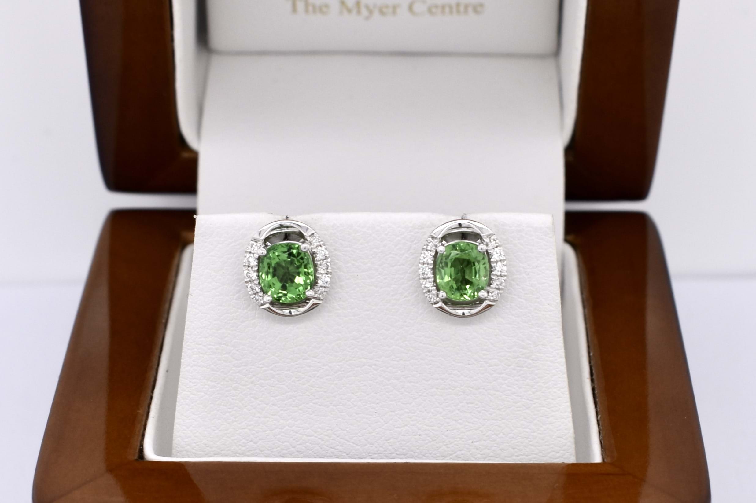 SOLD 18ct White Gold 1.51ct Light Green Tsavorite Garnet & 0.13ct G SI Diamond Oval Studs