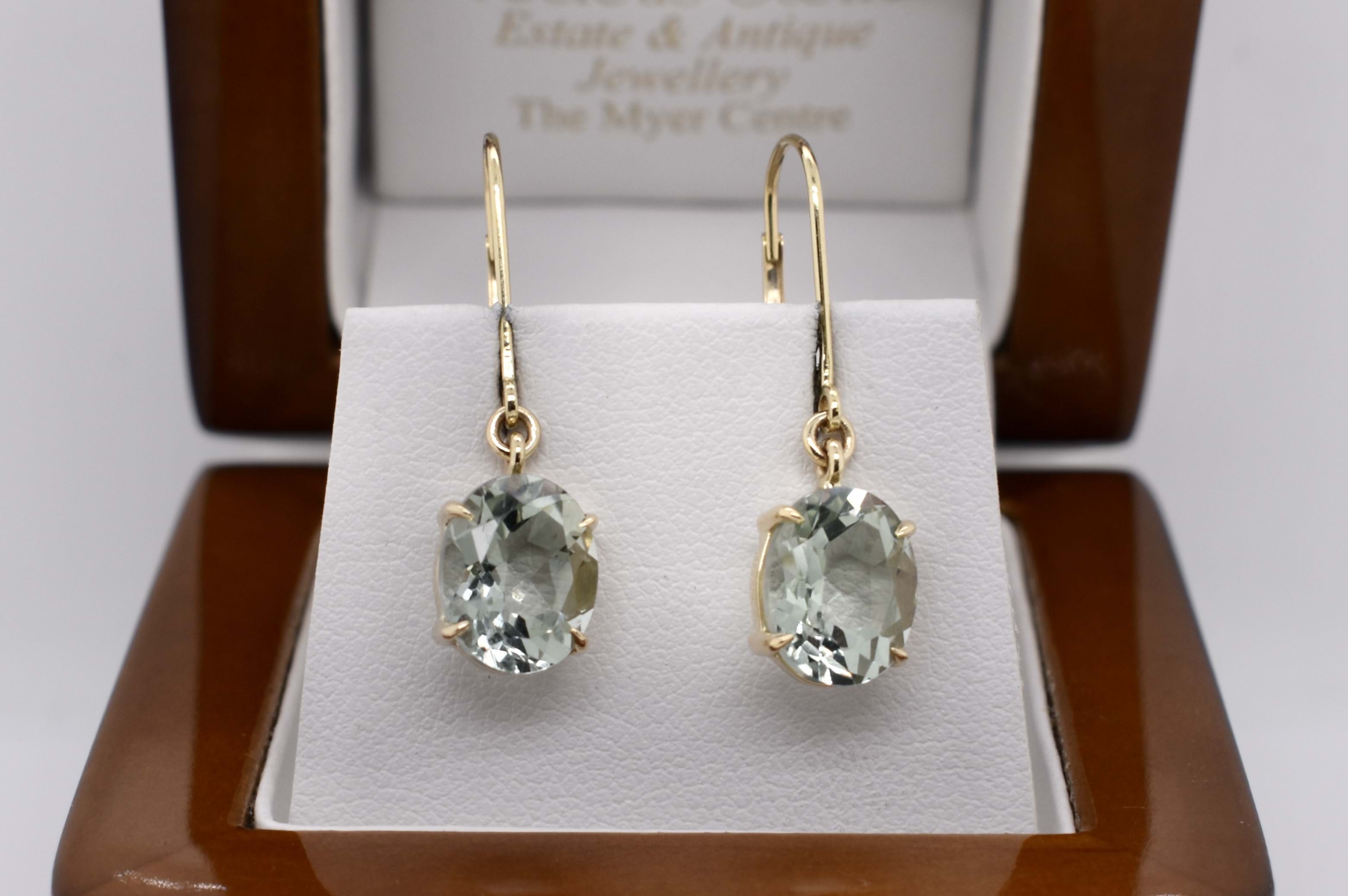 SOLD 9ct Yellow Gold Prasiolite Oval Drops