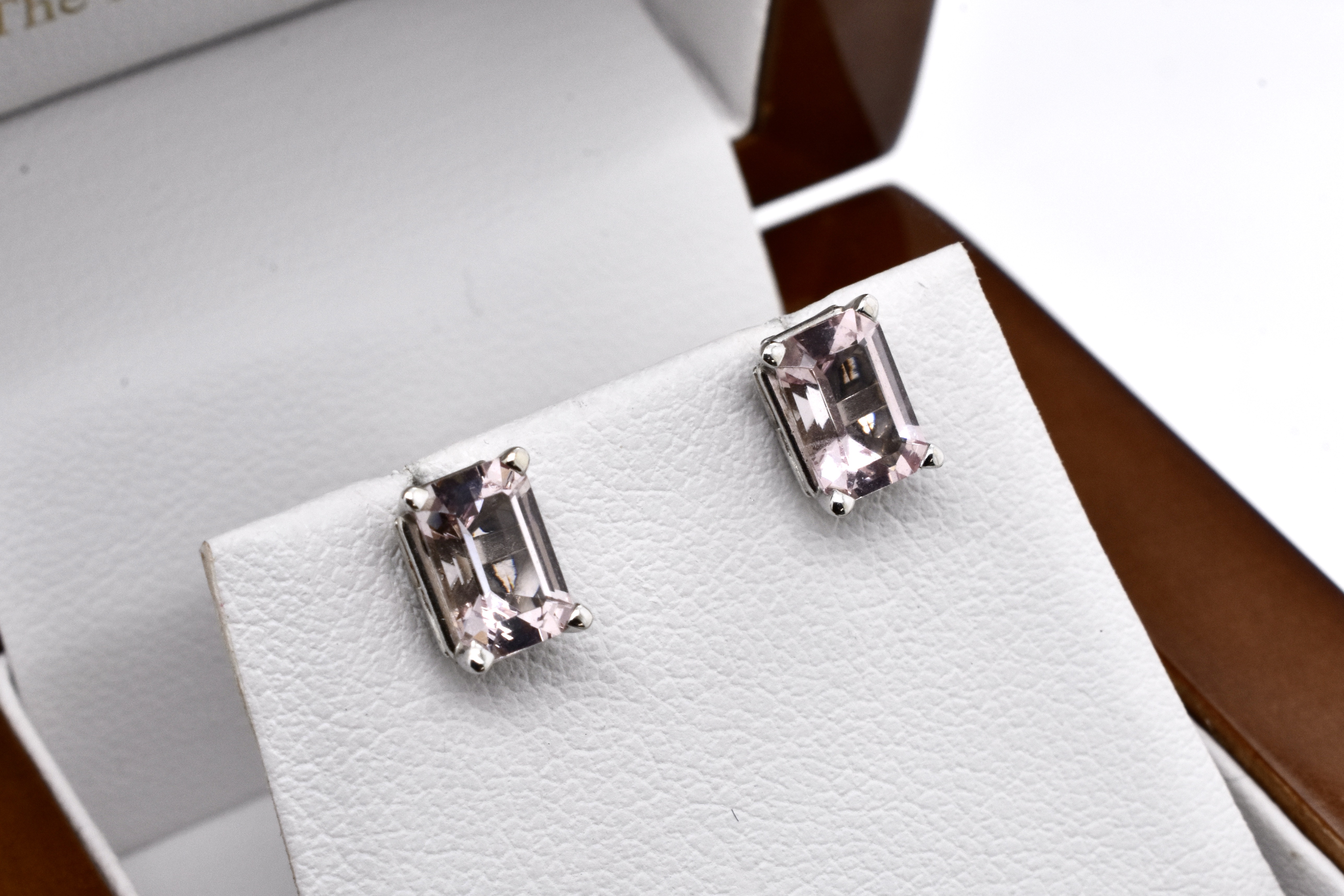 SOLD 18ct White Gold 1.29ct Emerald Cut Morganite Studs