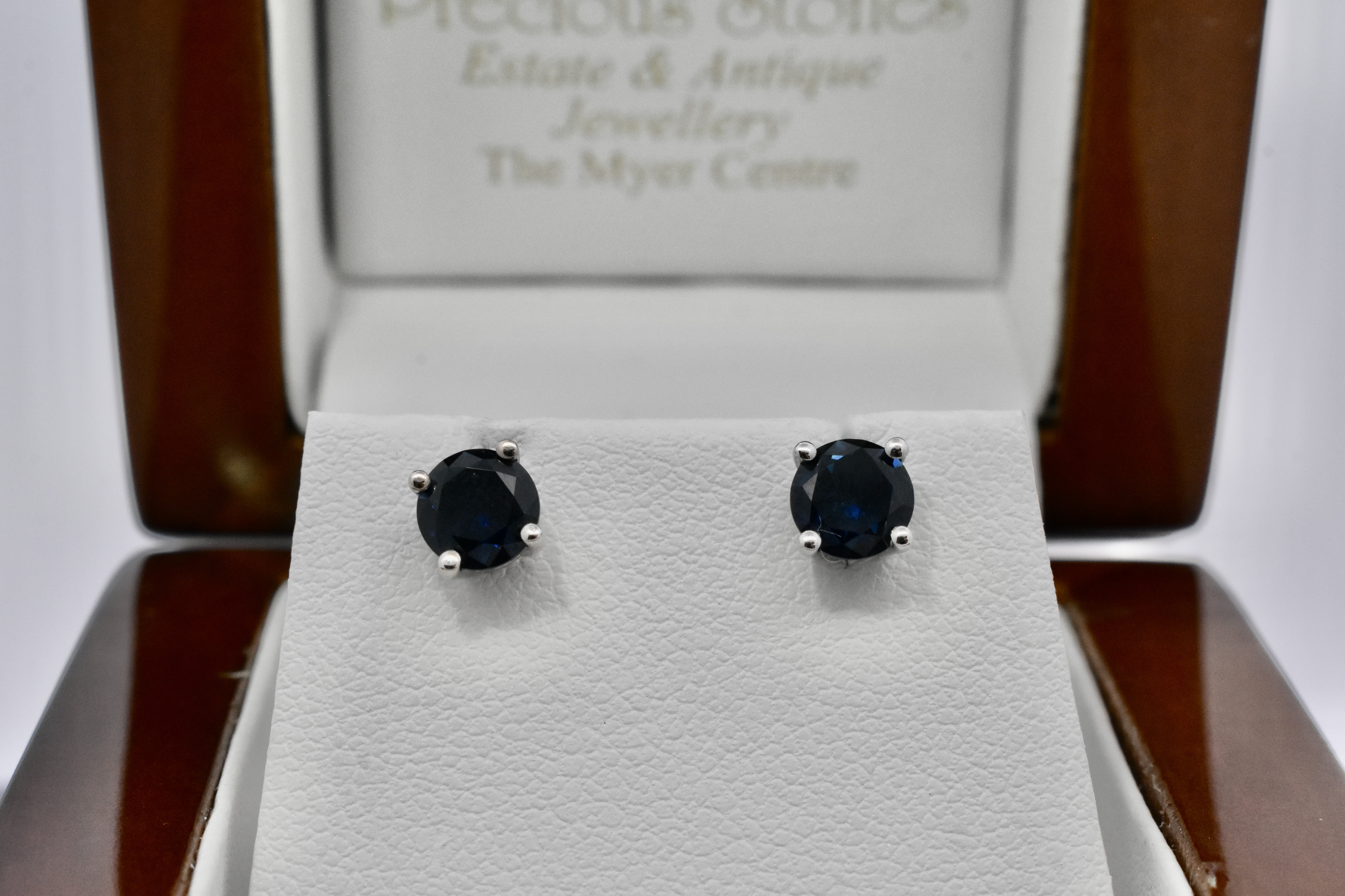 SOLD 18ct White Gold 1.46ct Round Australian Blue Sapphire Studs