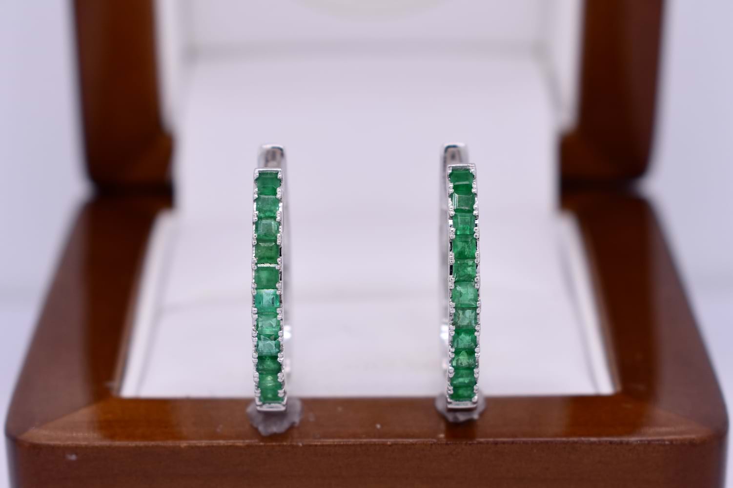 SOLD 18ct White Gold 0.82ct Square Cut Emerald Oval Hoops