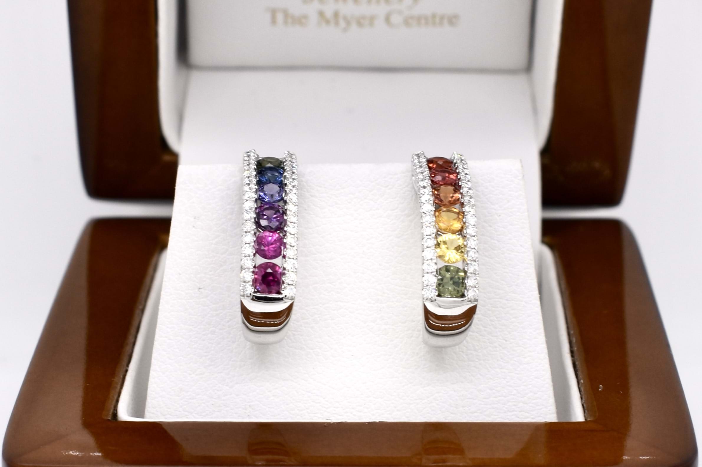 SOLD 18ct White Gold 1.44ct Rainbow Sapphire & 0.33ct Diamond 1/2 Cuff Earrings