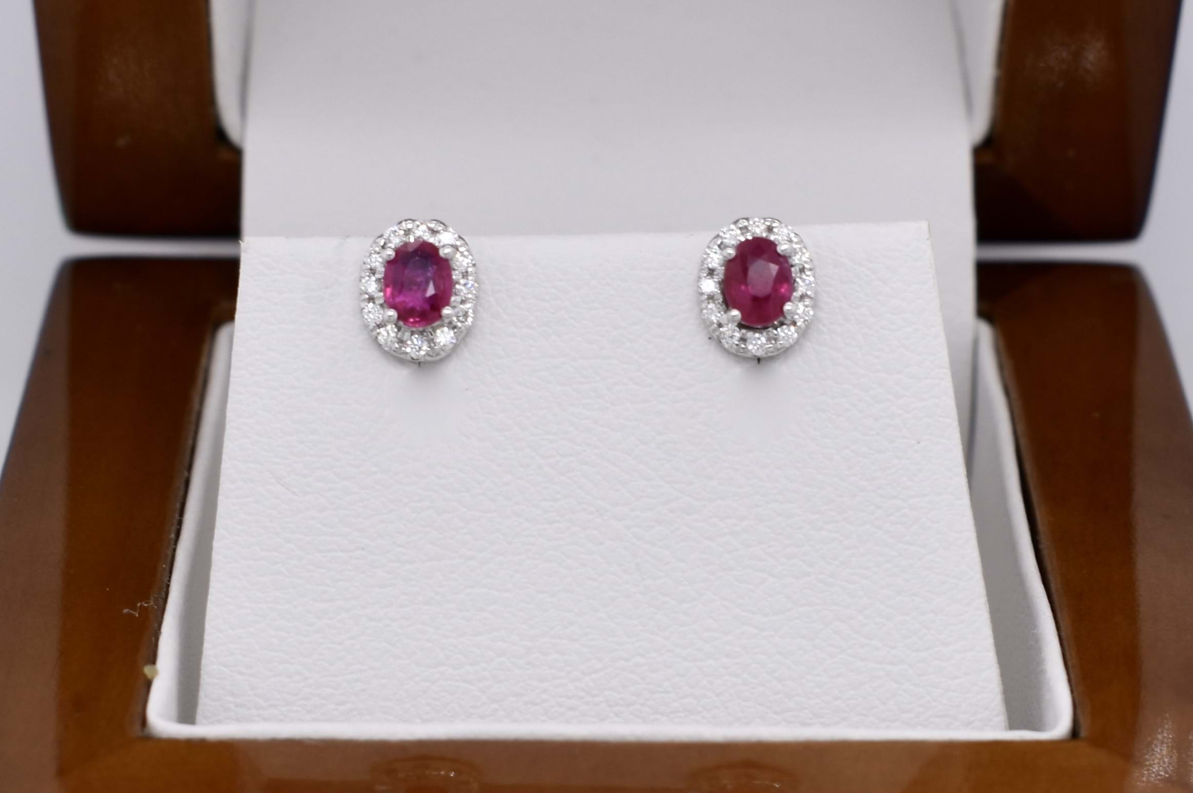 SOLD 18ct White Gold 0.47ct Ruby & 0.12ct Diamond Halo Studs