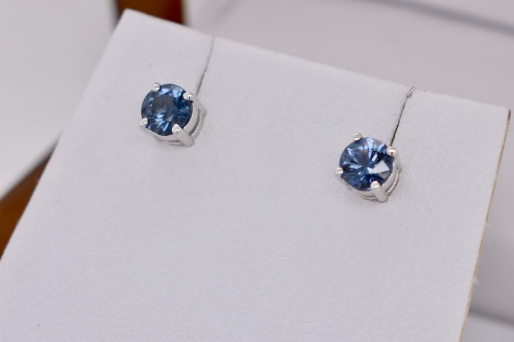 SOLD 18ct White Gold 1.24ct Australian Sapphire 5.08mm Round Studs