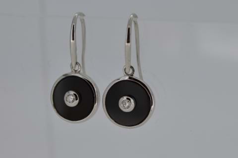 SOLD 9ct White Gold Onyx & Diamond Drops