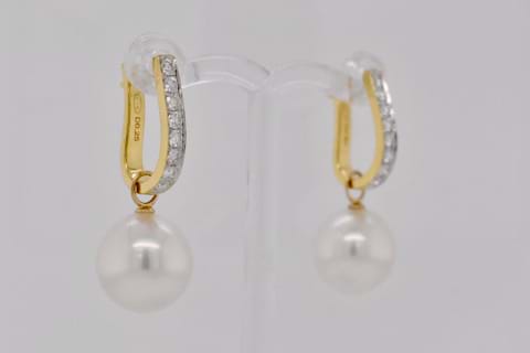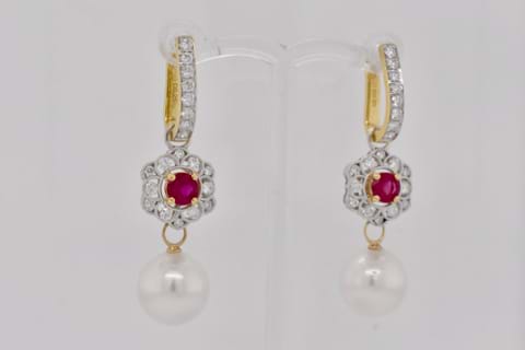 Beautifuly constructed in 18ct yellow gold and set with eight white, round brilliant cut diamond in each earring with a combined total weight of 0.50cts. These Diamond huggies can be worn everyday just as they are or you can add different drops of your choice. Pictured with the huggies are ruby and diamond enhancers and also pearl enhancers, all of which are available for separate purchase.