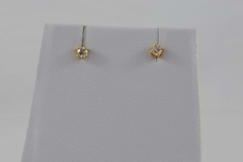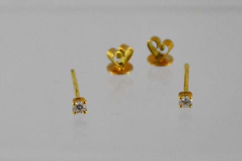 These small but sparkly diamond studs are set into 18ct yellow gold and the two round brilliant cut diamonds total 0.12cts.