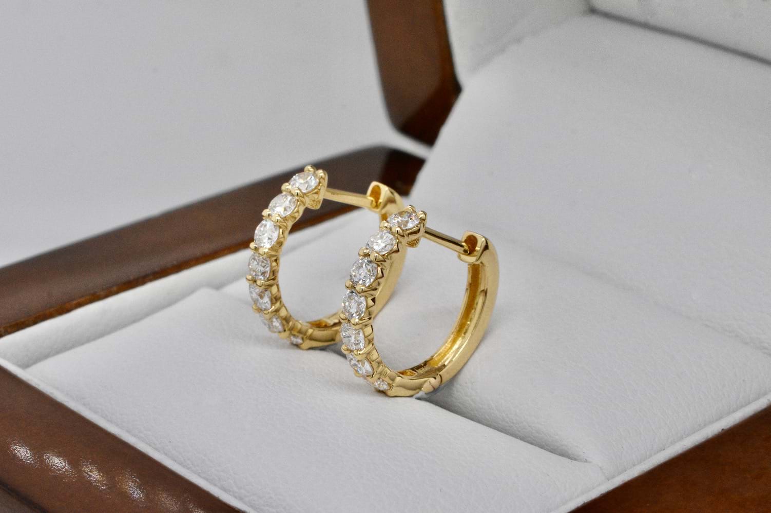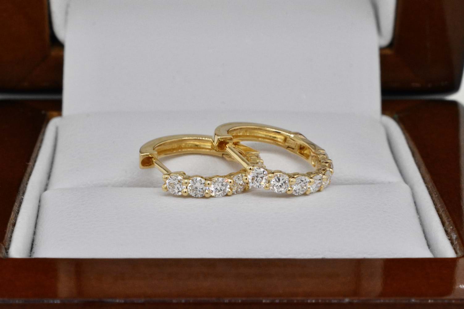 Timeless and sparkling diamond huggie earrings crafted in 18ct yellow gold featuring seven round brilliant cut diamonds shared claw set into each earring with a combined total of 0.56cts FG/VS-SI. Independent Valuation Supplied