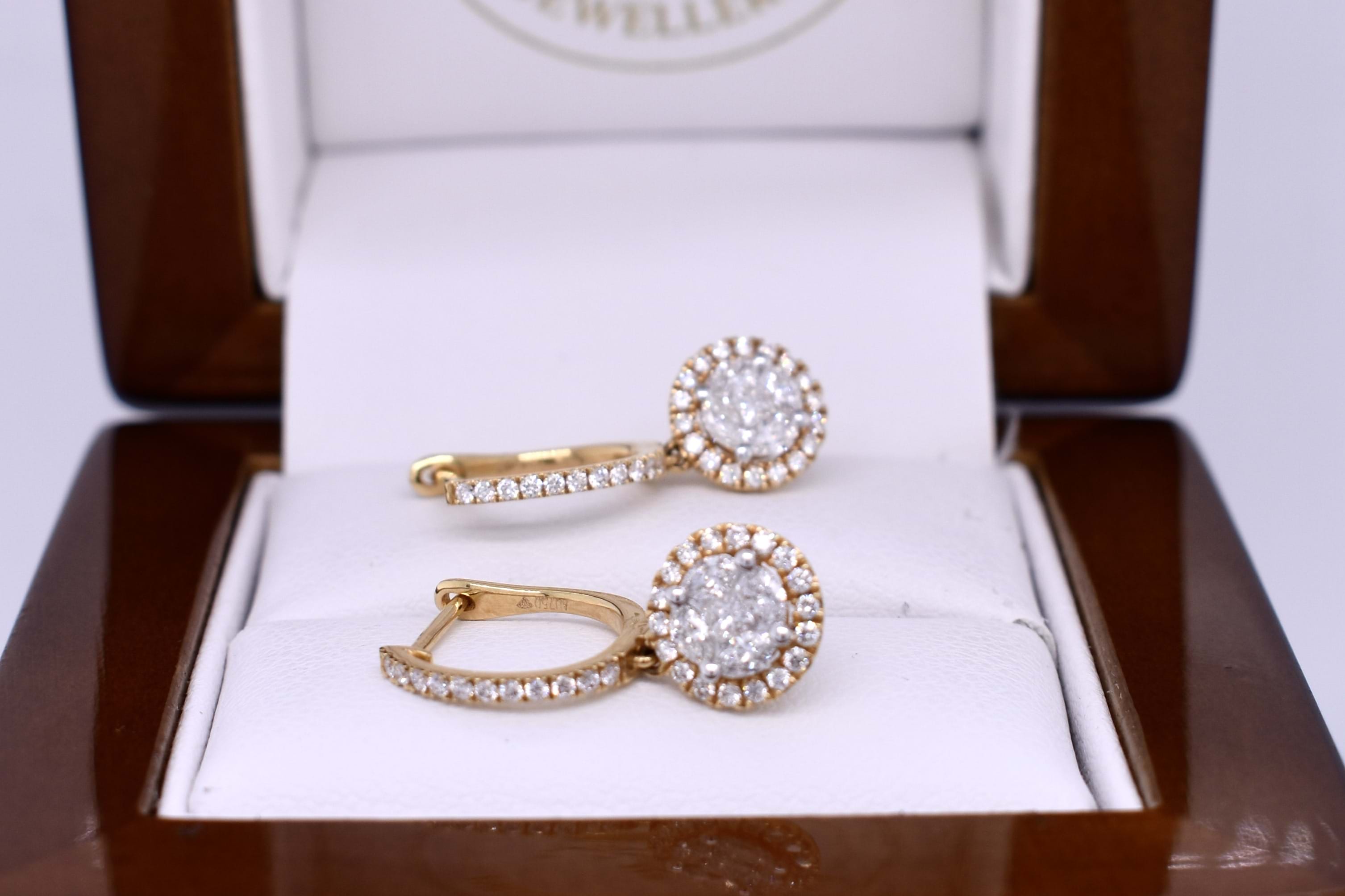 SOLD 18ct Yellow Gold 0.73ct FG VS-SI Huggies & Illusion Drops