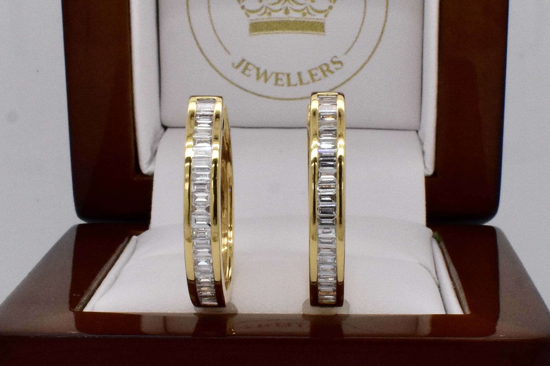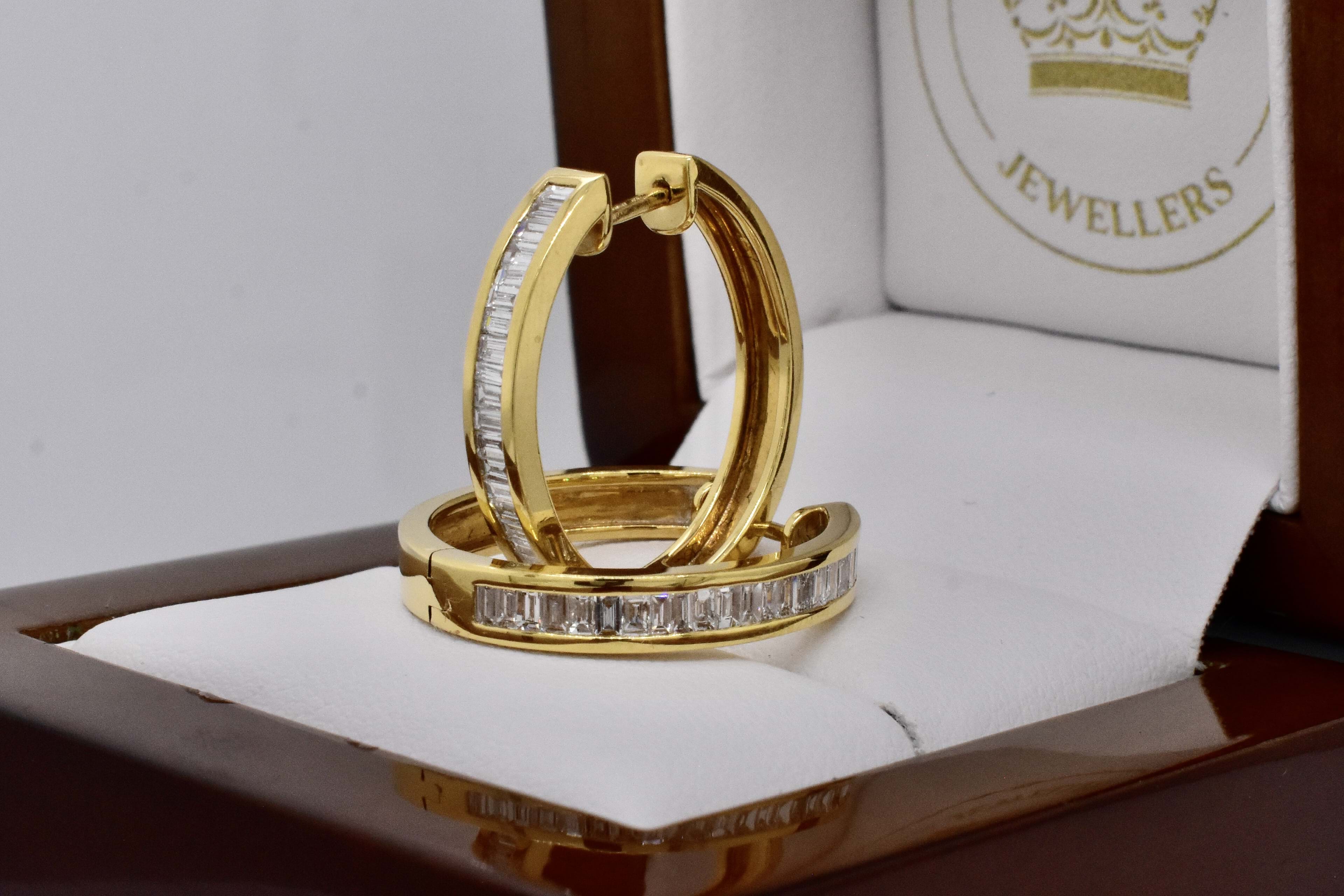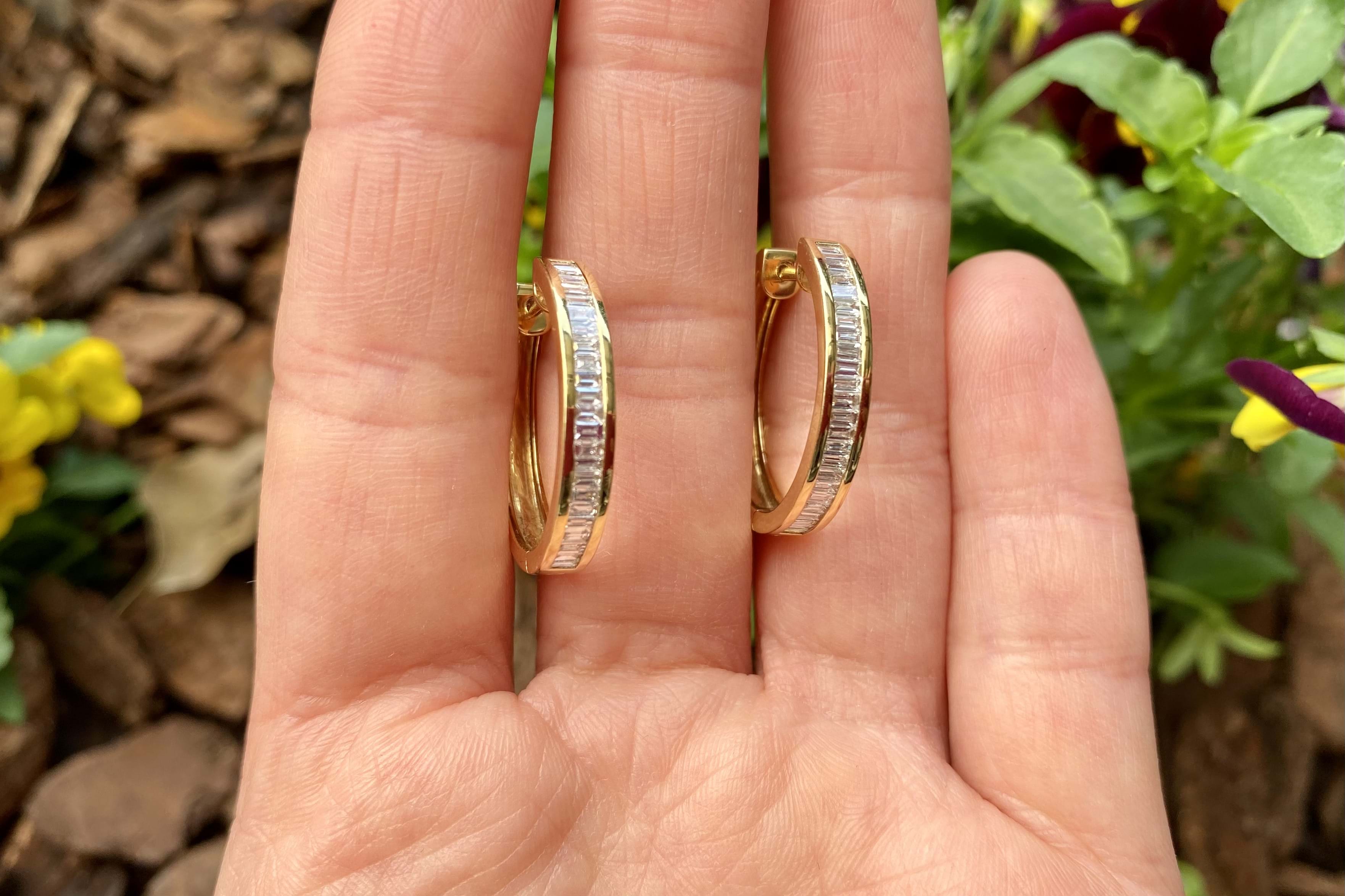 SOLD 18ct Yellow Gold 0.75ct Baguette Diamond Channel Set Oval Huggies