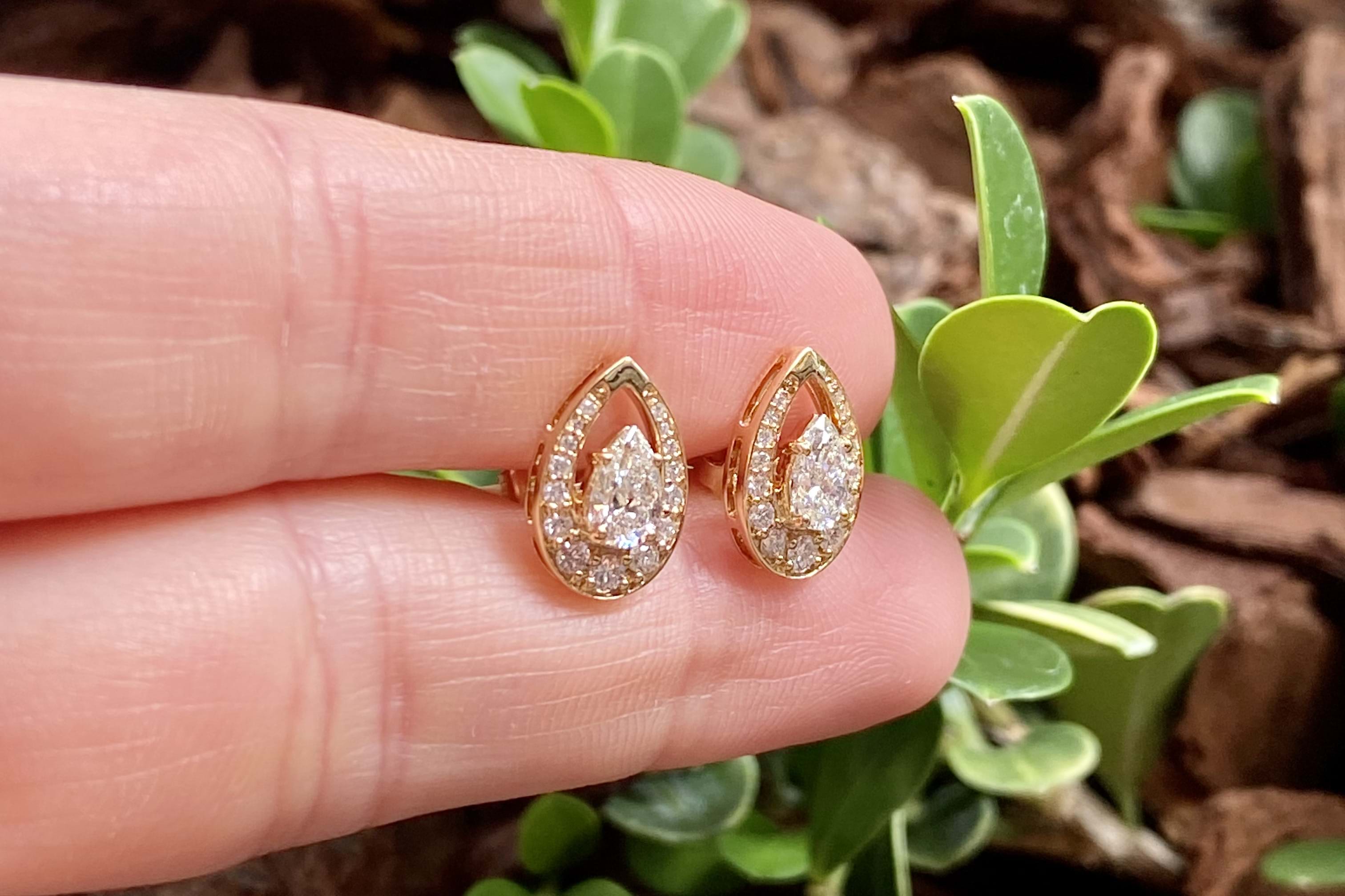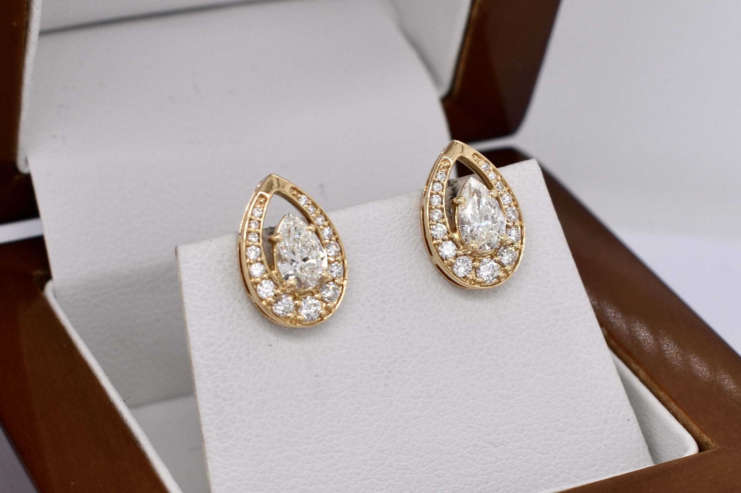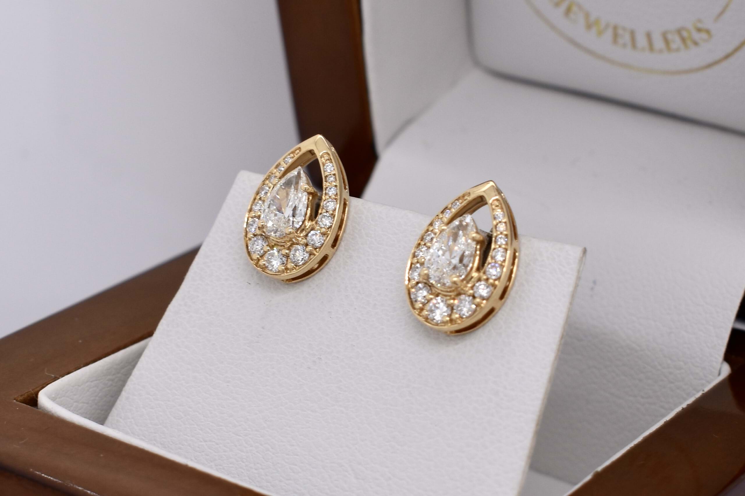 SOLD 18ct Yellow Gold 1.01ct Diamond Pear Shaped Gapped Halo Studs