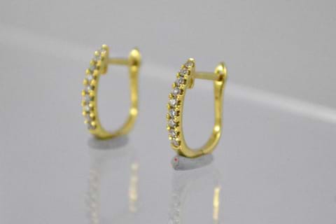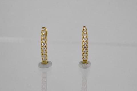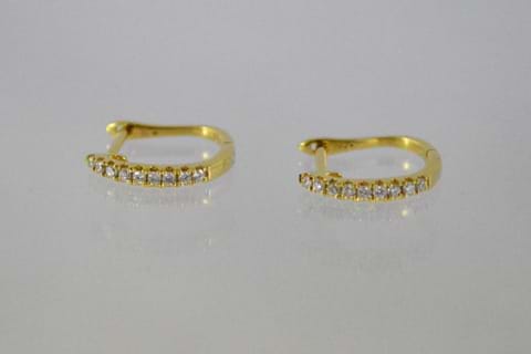 With nine glistening round brilliant cut diamonds, cut down claw set, in each huggie these earrings are both petite, practical and pretty. Crafted in 18ct yellow gold they have a combined total diamond content of 0.13cts and they look beautiful alone, or when paired with removable drops