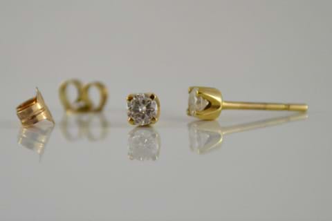 Set into four claw 9ct yellow gold stud fittings with butterfly backs, these shimmering round brilliant cut diamonds total 0.28cts. Independent Valuation Supplied