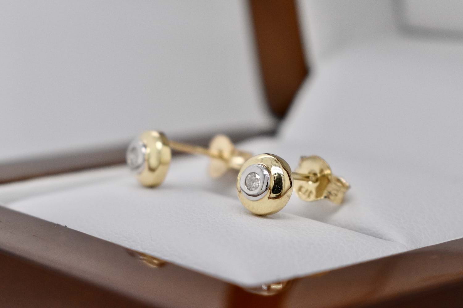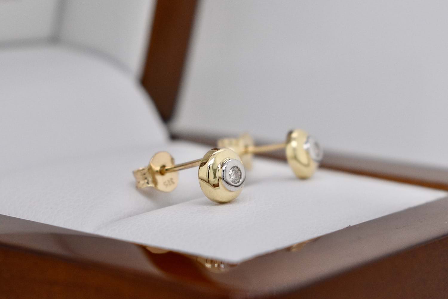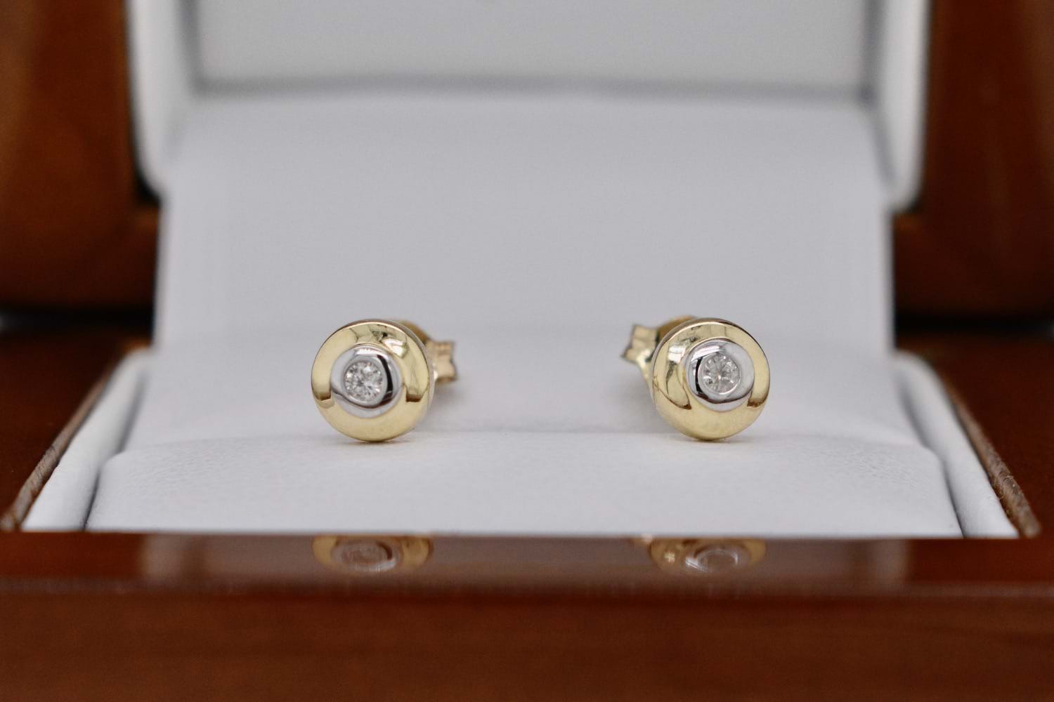 SOLD 9ct Yellow Gold Bezel Set 0.05ct Diamond Studs