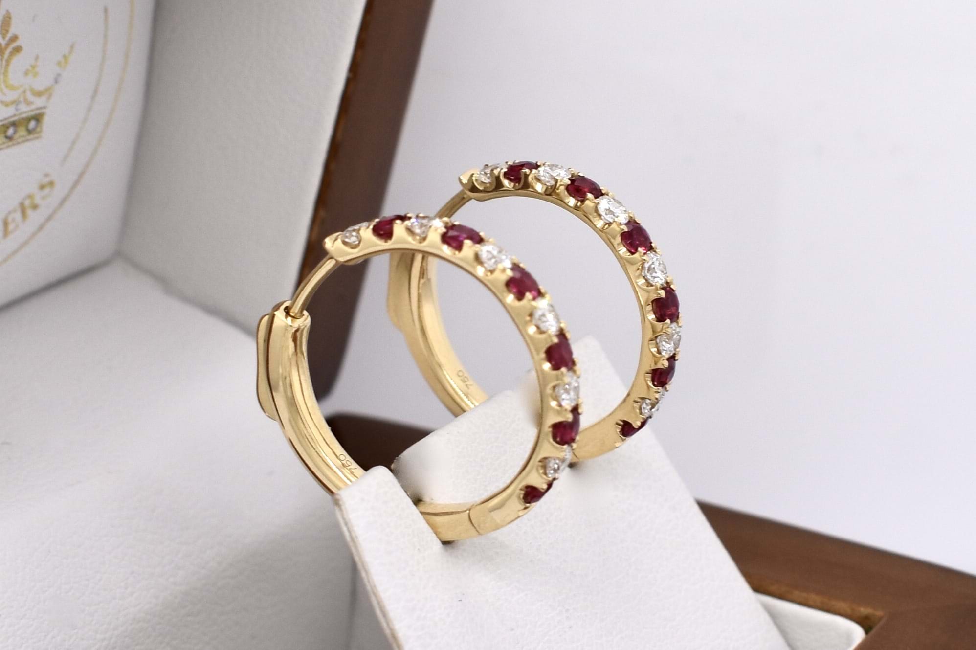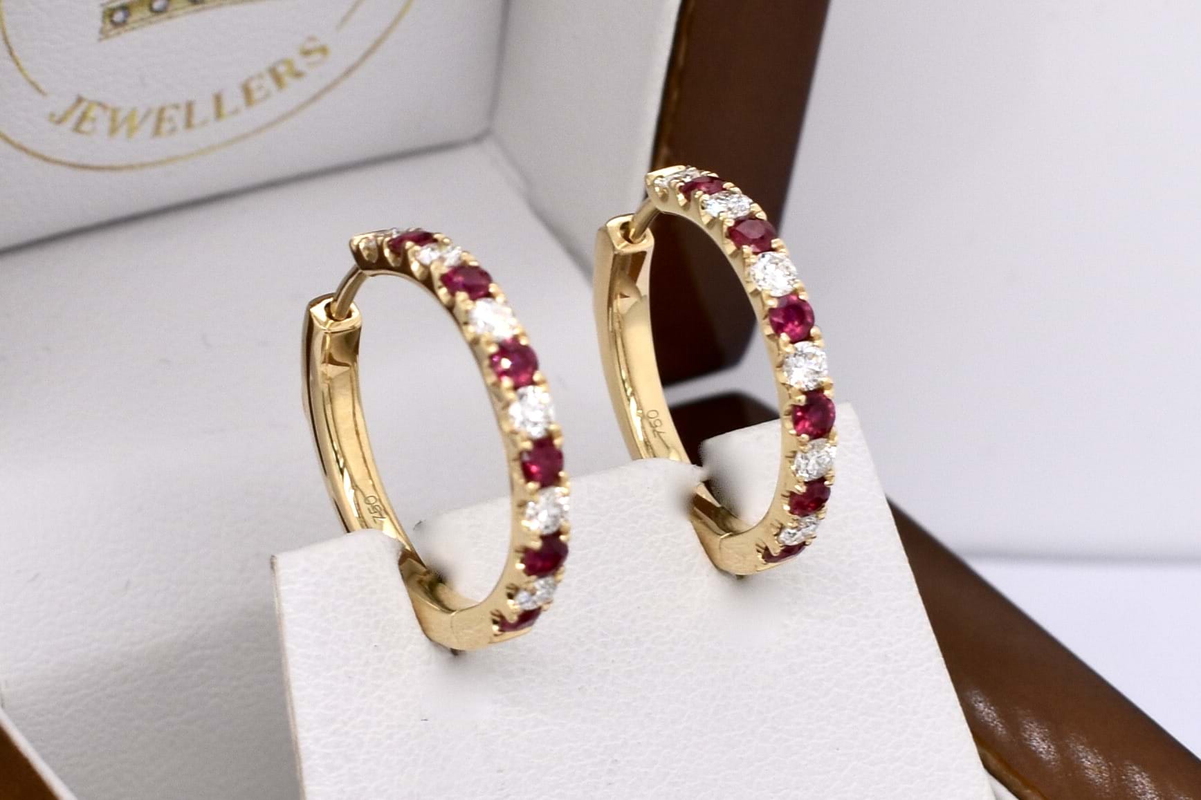 SOLD 18ct Yellow Gold 0.71ct Ruby & 0.57ct Diamond Alternating Hoops