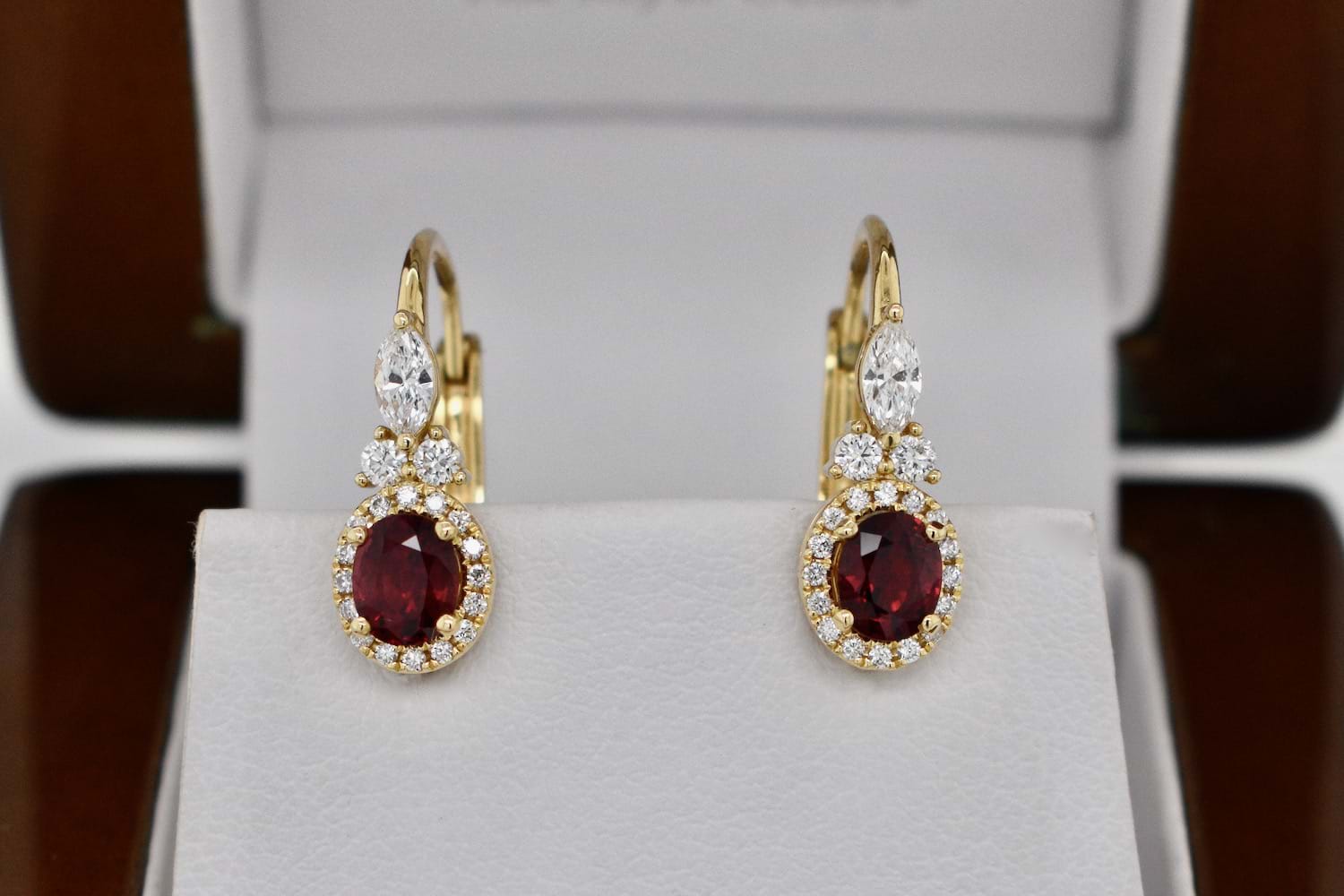 SOLD 18ct Yellow Gold 1.14ct Ruby & 0.37ct Diamond Earrings