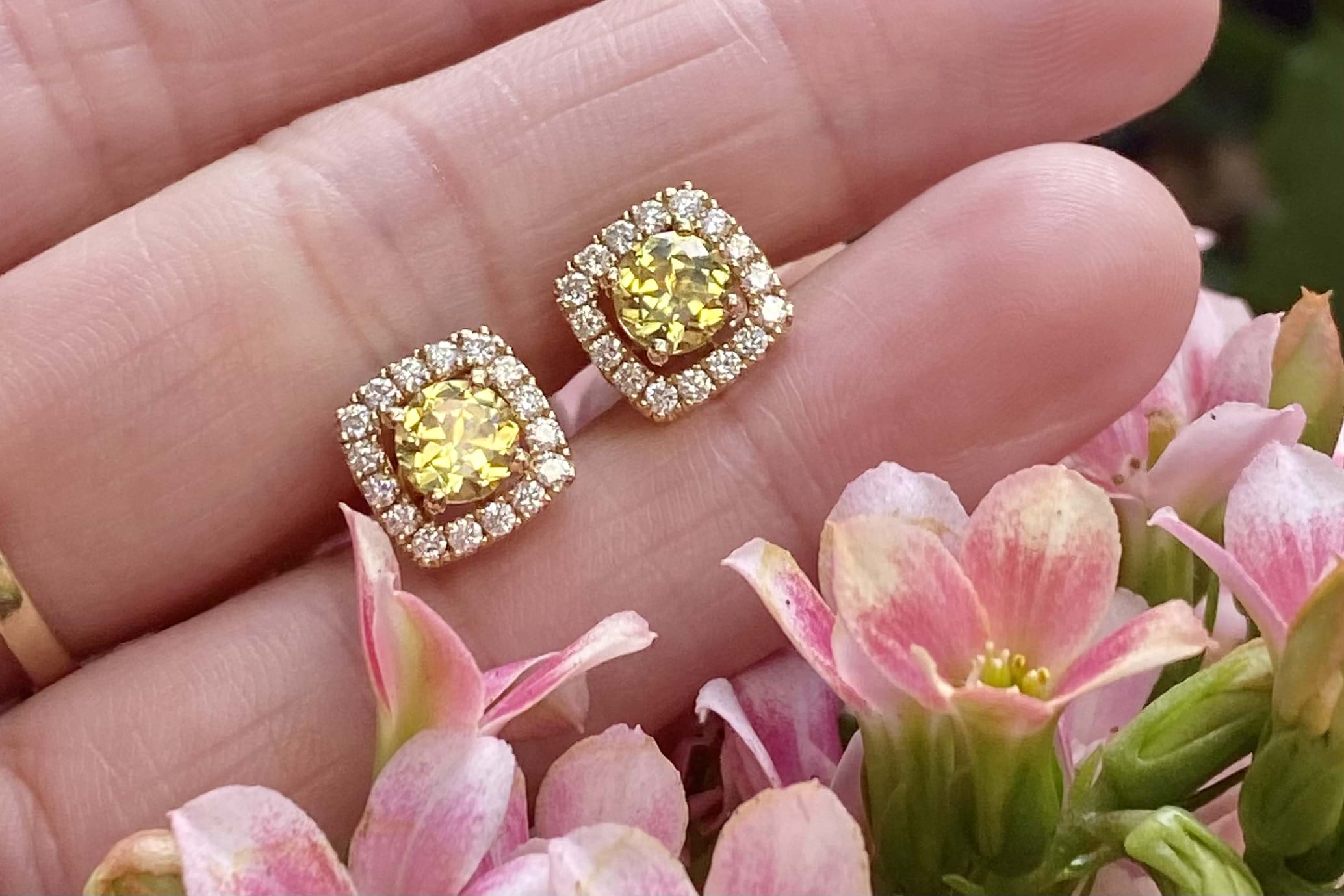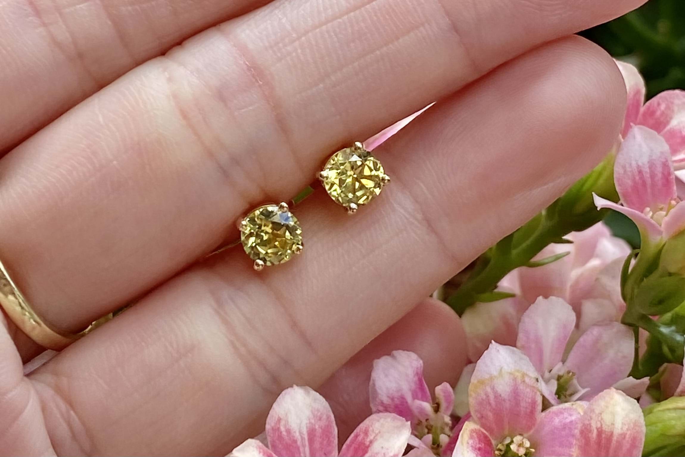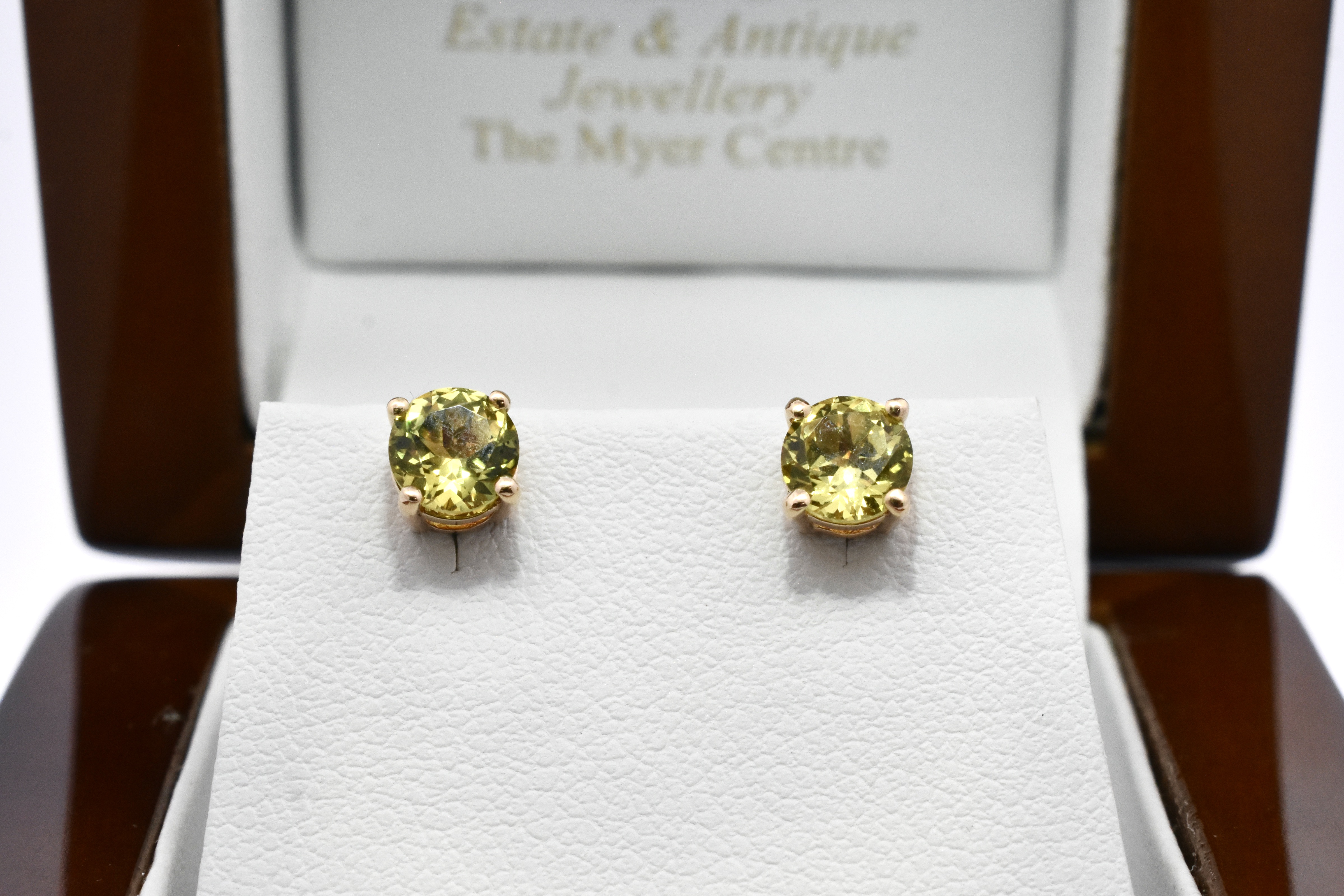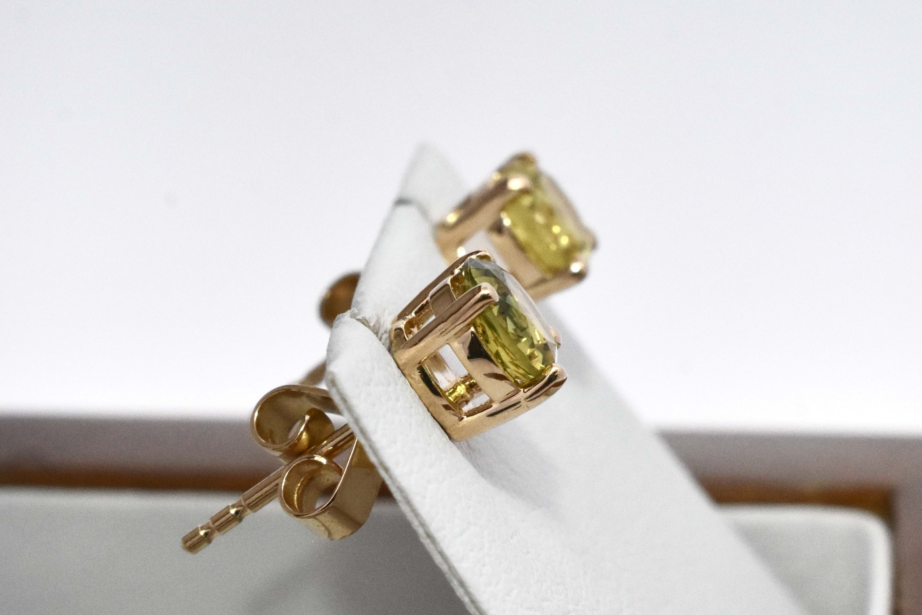 This stunning and sparkly pair of studs is crafted in 18ct yellow gold with two centre round bright mid yellow Australian sapphires, with post and butterfly fittings. Total of two sapphires equalling 1.37ct. Look amazing worn alone or add some sparkle with jackets. Pictured with 20349806 available for separate purchase. Independent Valuation Supplied.
