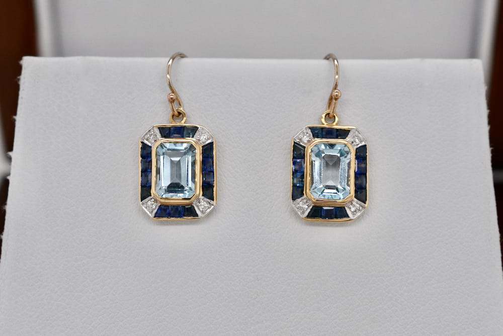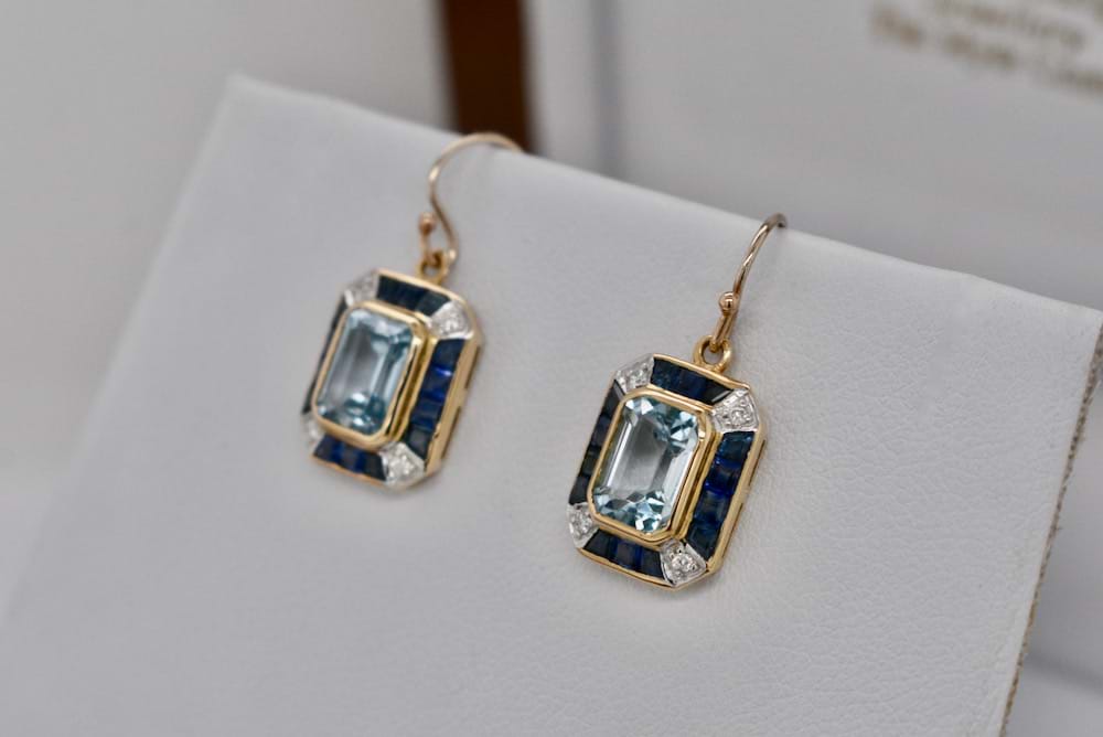 SOLD 9ct Yellow Gold Blue Topaz, Blue & White Sapphire Earrings