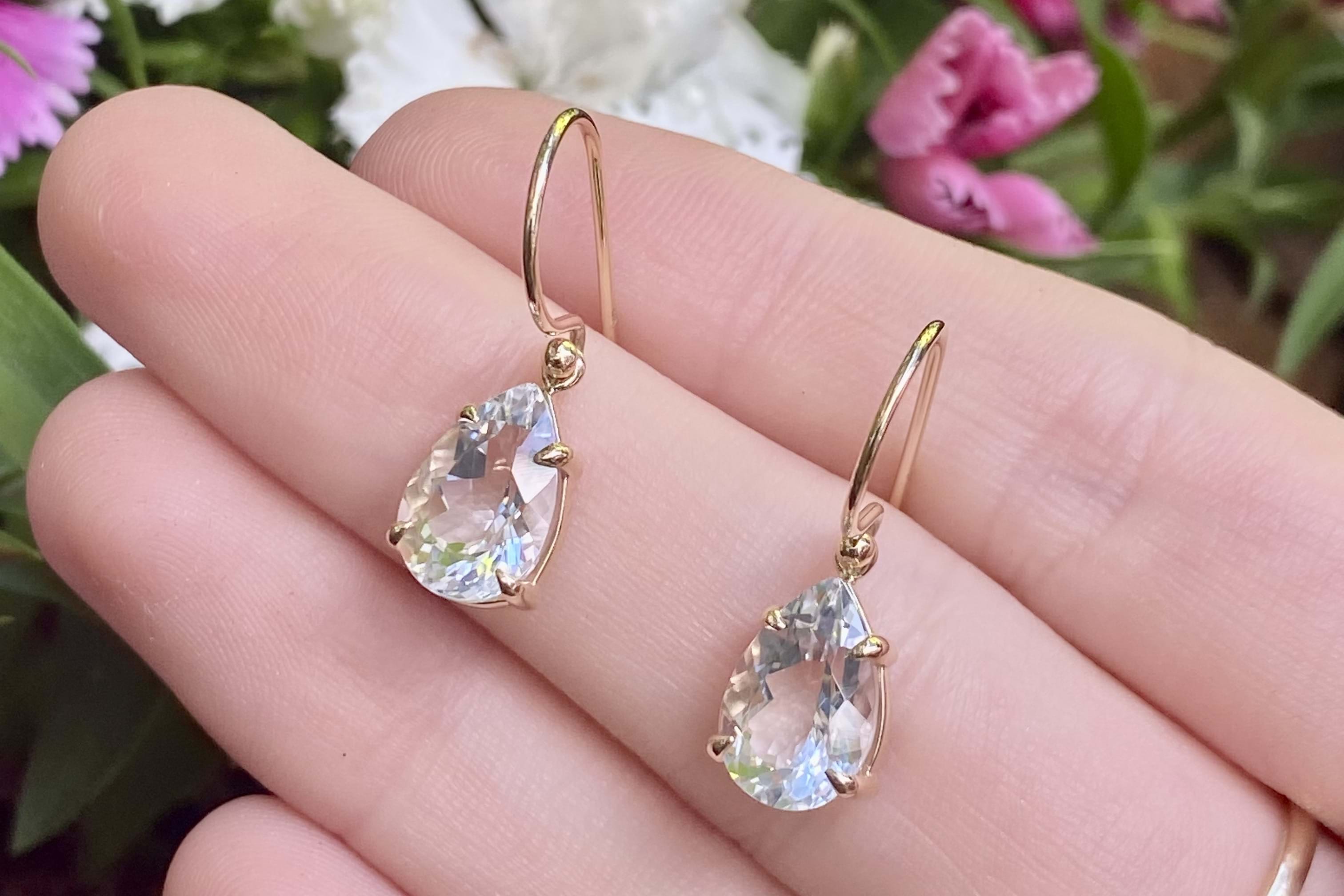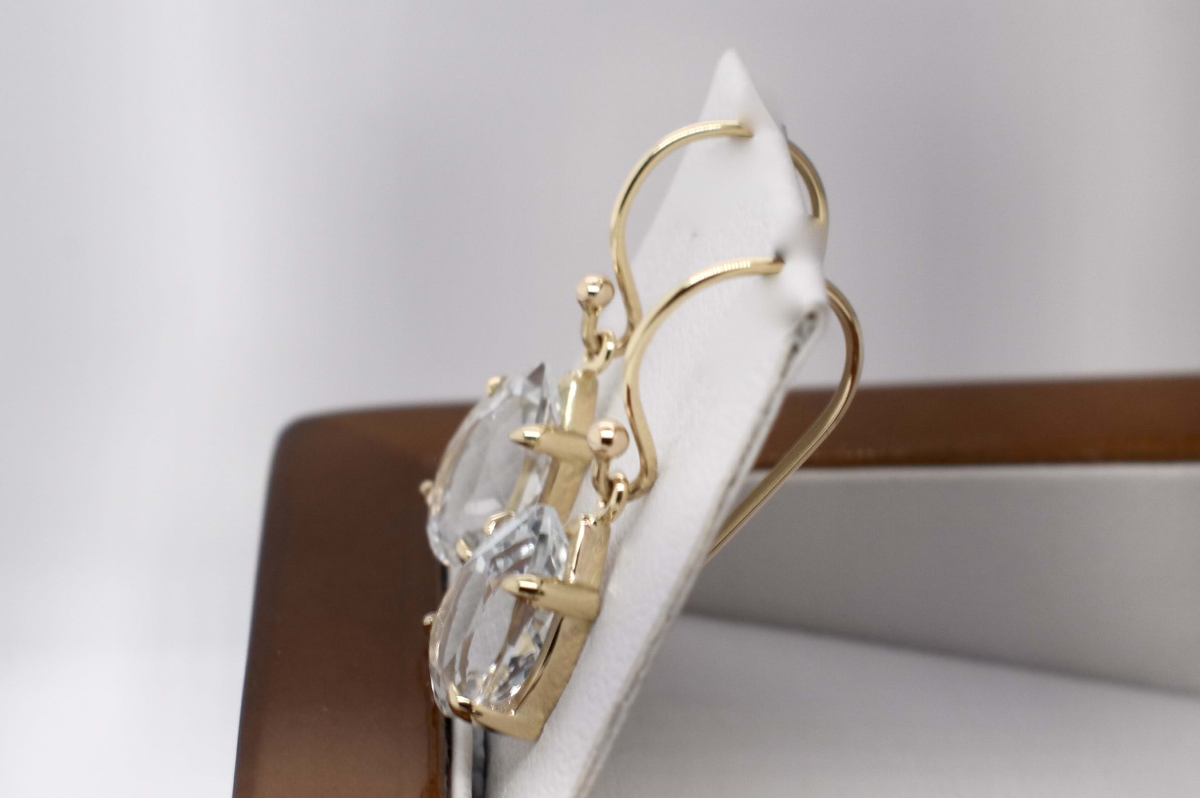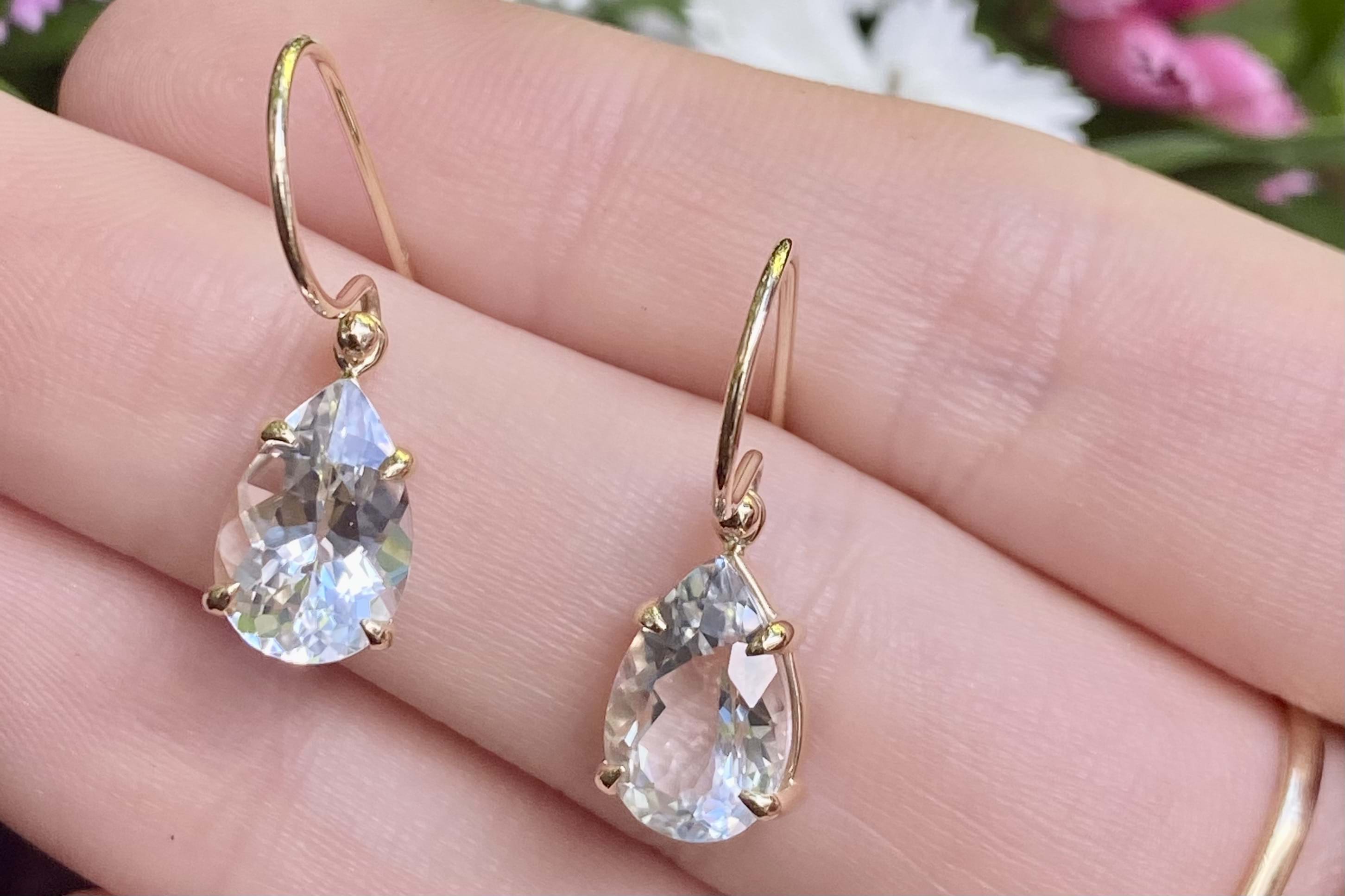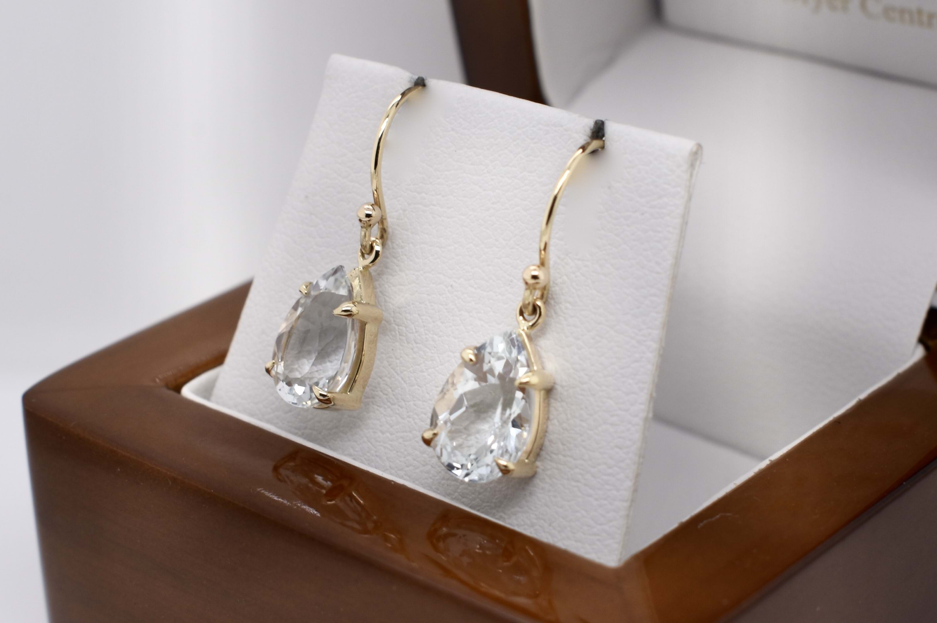 SOLD 9ct Yellow Gold Colourless Topaz Pearshape Drops