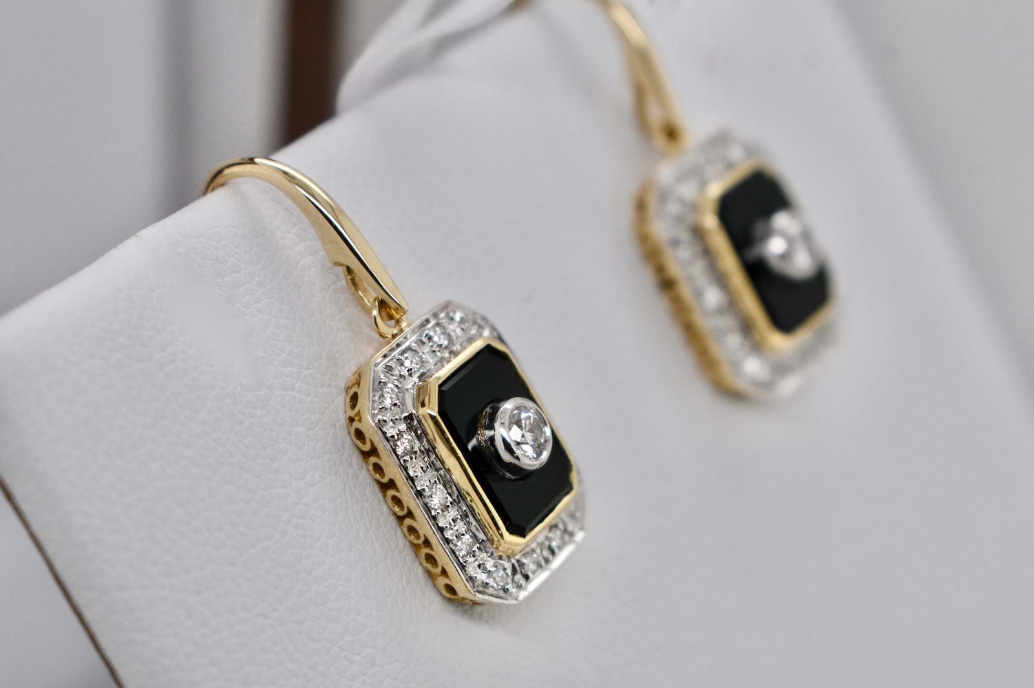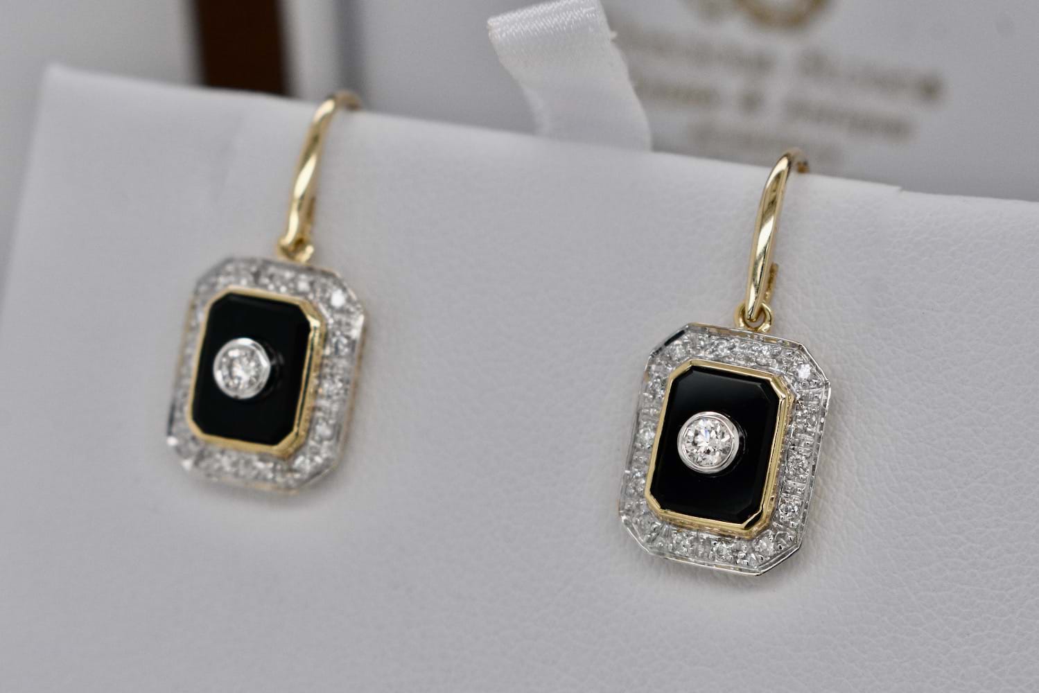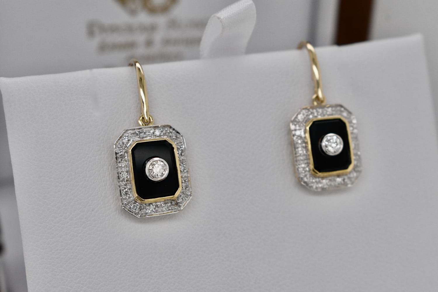 SOLD 9ct Yellow Gold Onyx & 0.33ct Diamond Drop Earrings