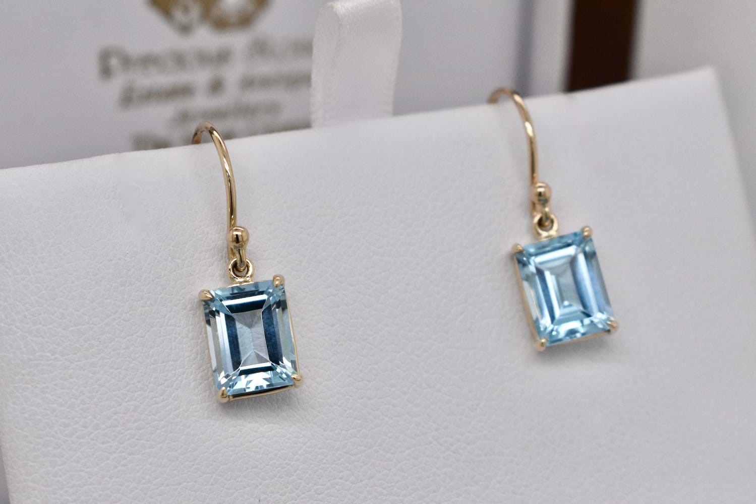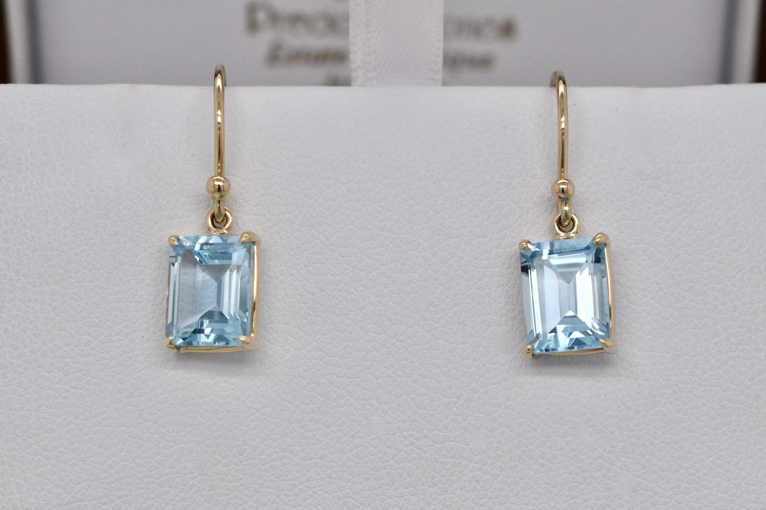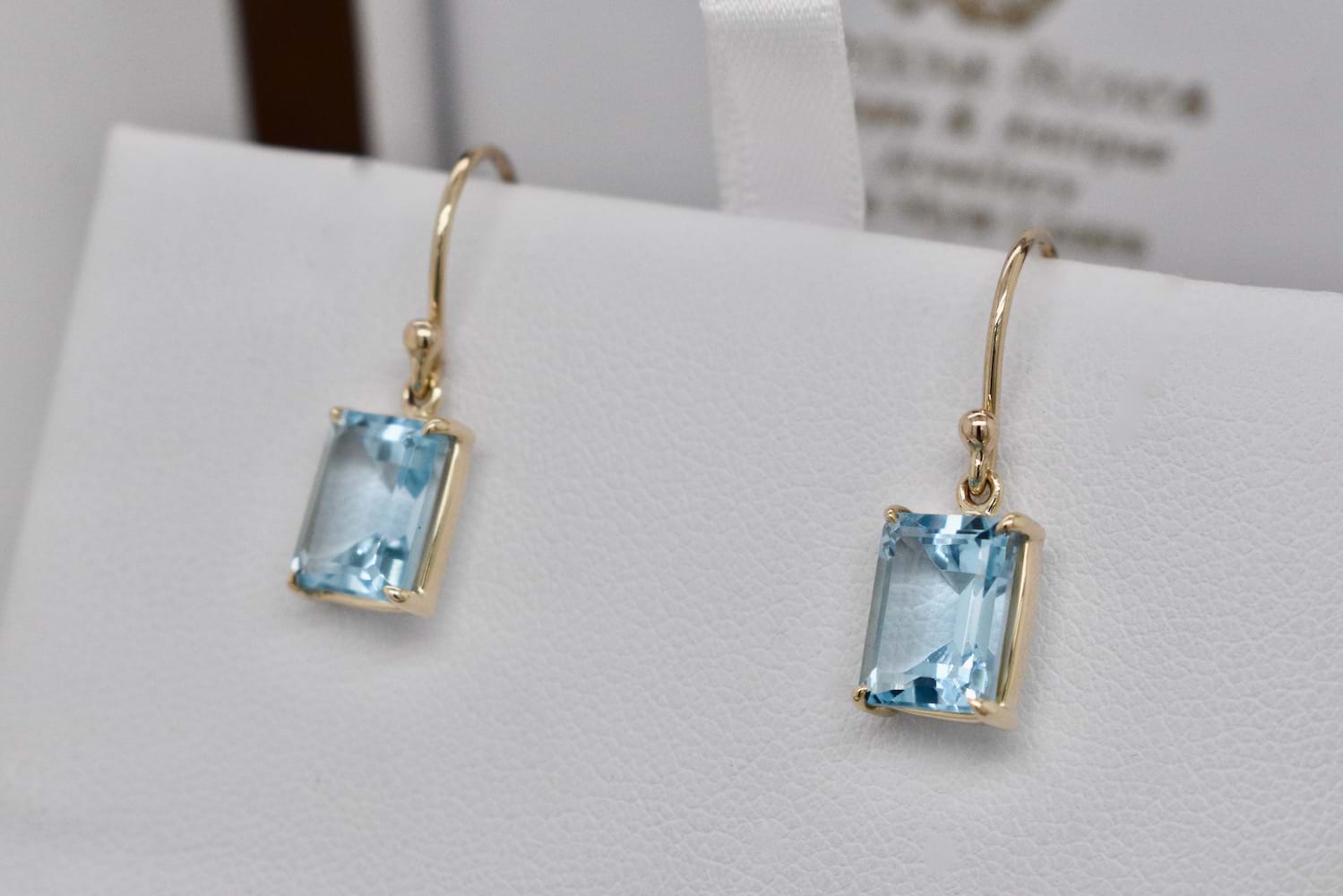 SOLD Handmade 9ct Emerald Cut Sky Blue Topaz Earrings