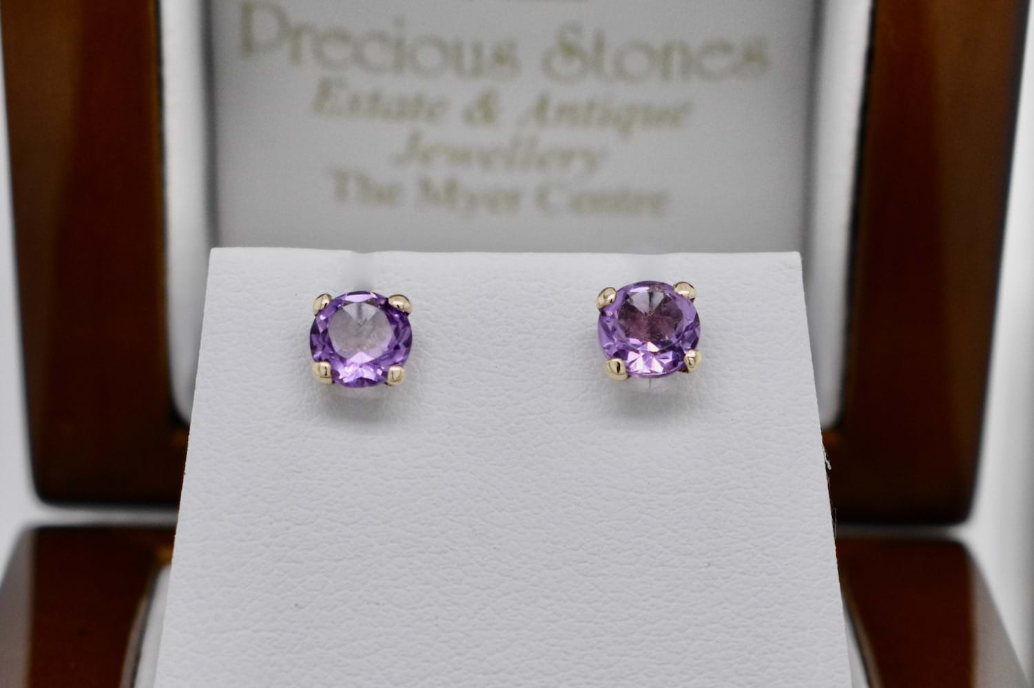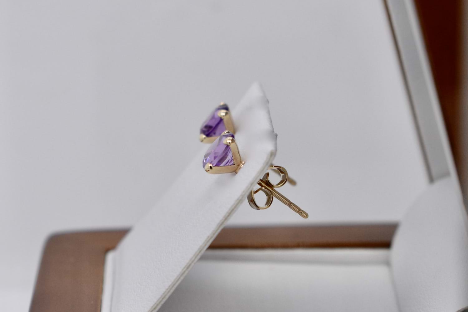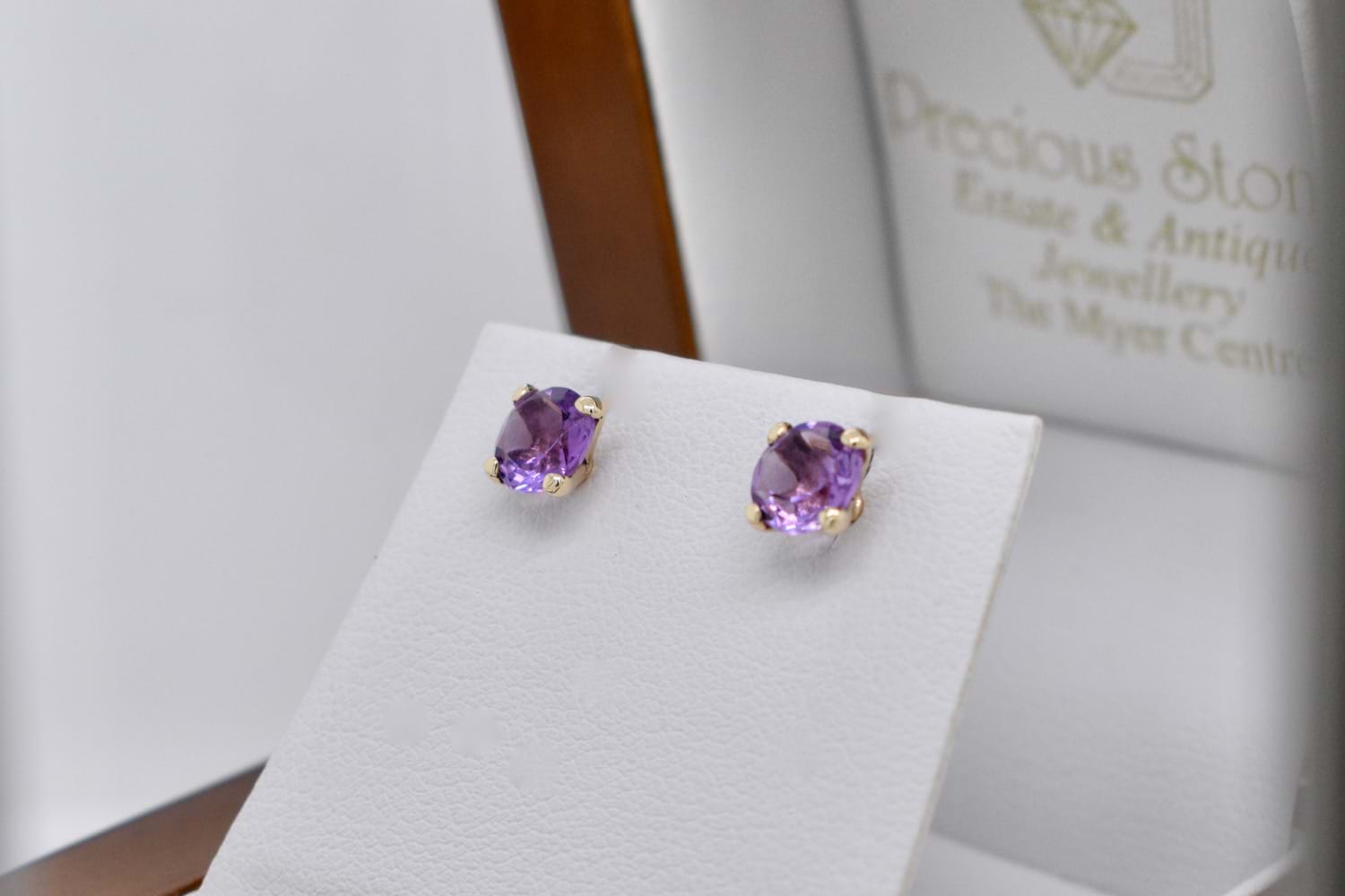 SOLD Handmade 9ct Yellow Gold 6mm Amethyst Studs