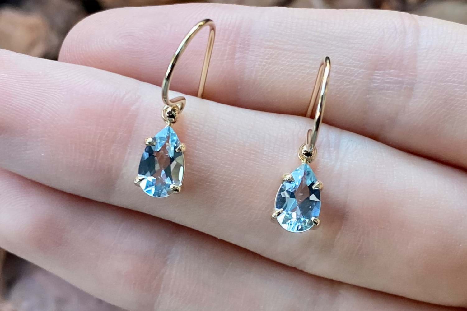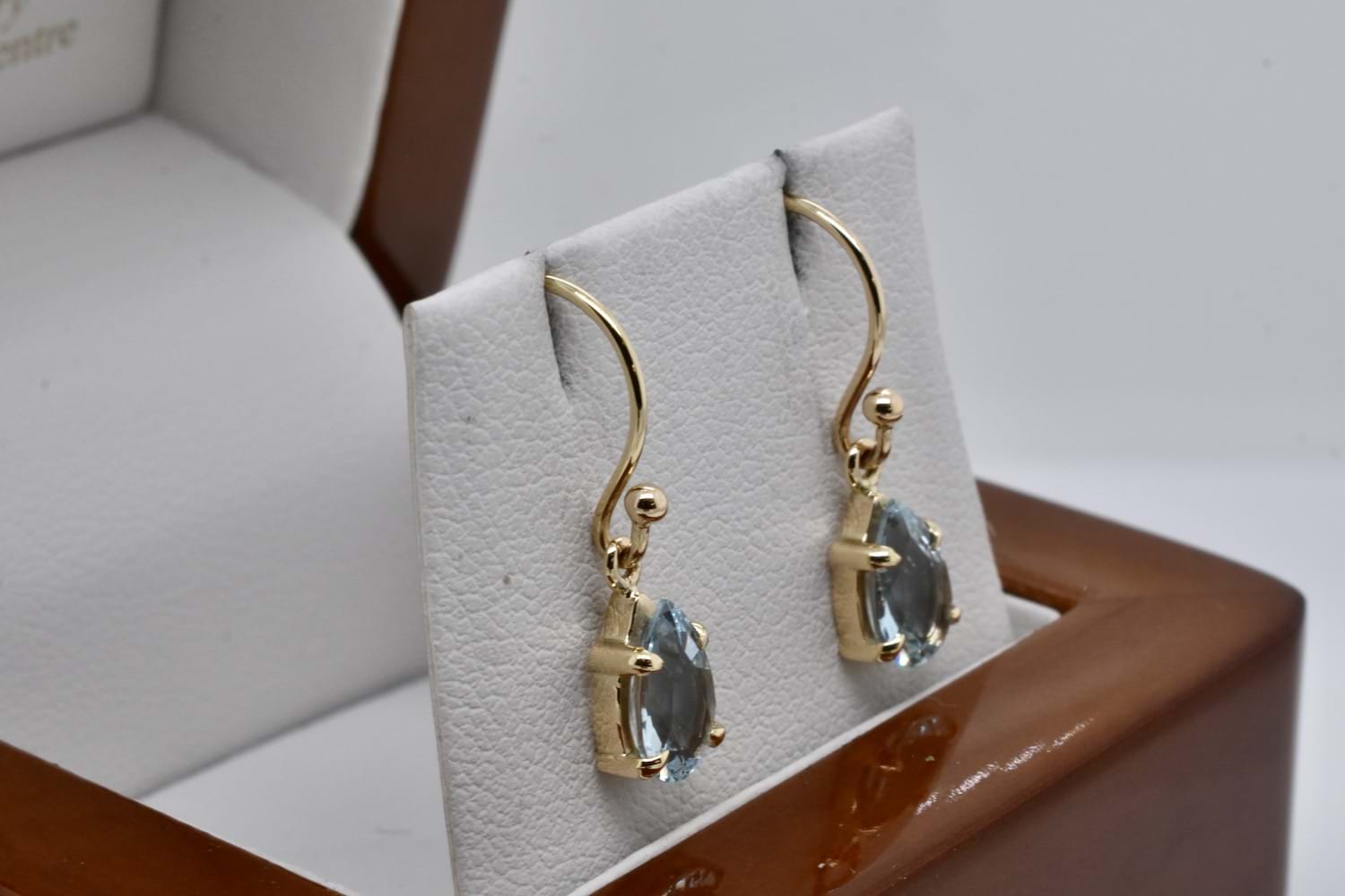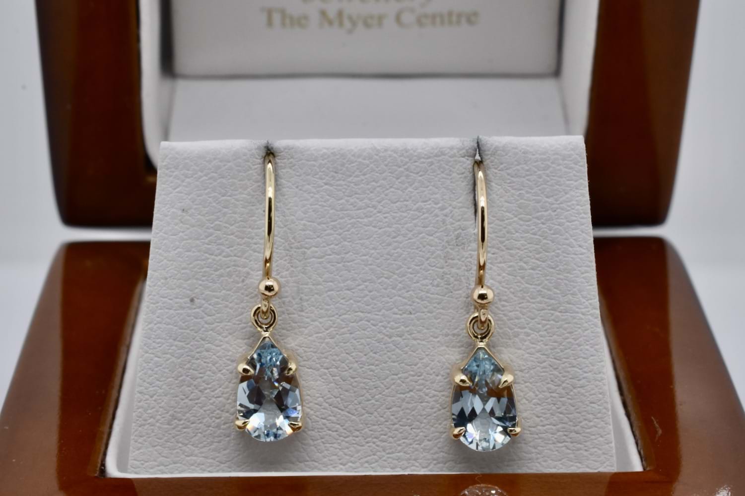 SOLD Handmade 9ct Yellow Gold 8 x 6mm Pear Shape Aquamarine Earrings