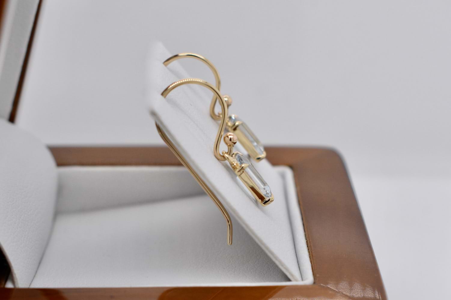 SOLD Handmade 9ct Yellow Gold Emerald Cut Aquamarine Drop Earrings