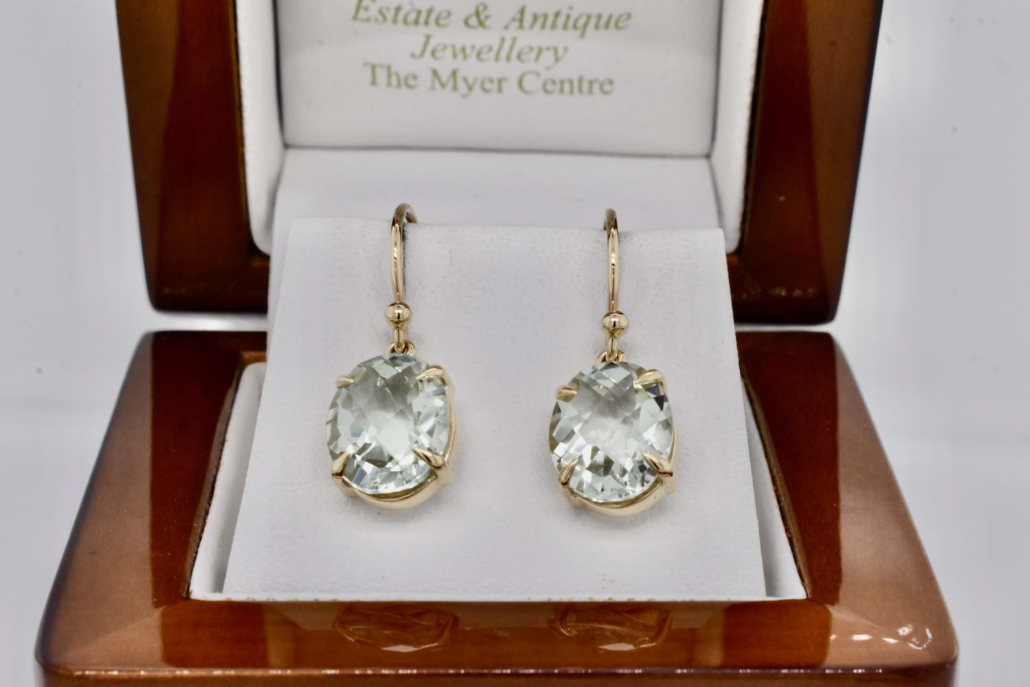 SOLD Handmade 9ct Yellow Gold Oval Prasiolite Drops
