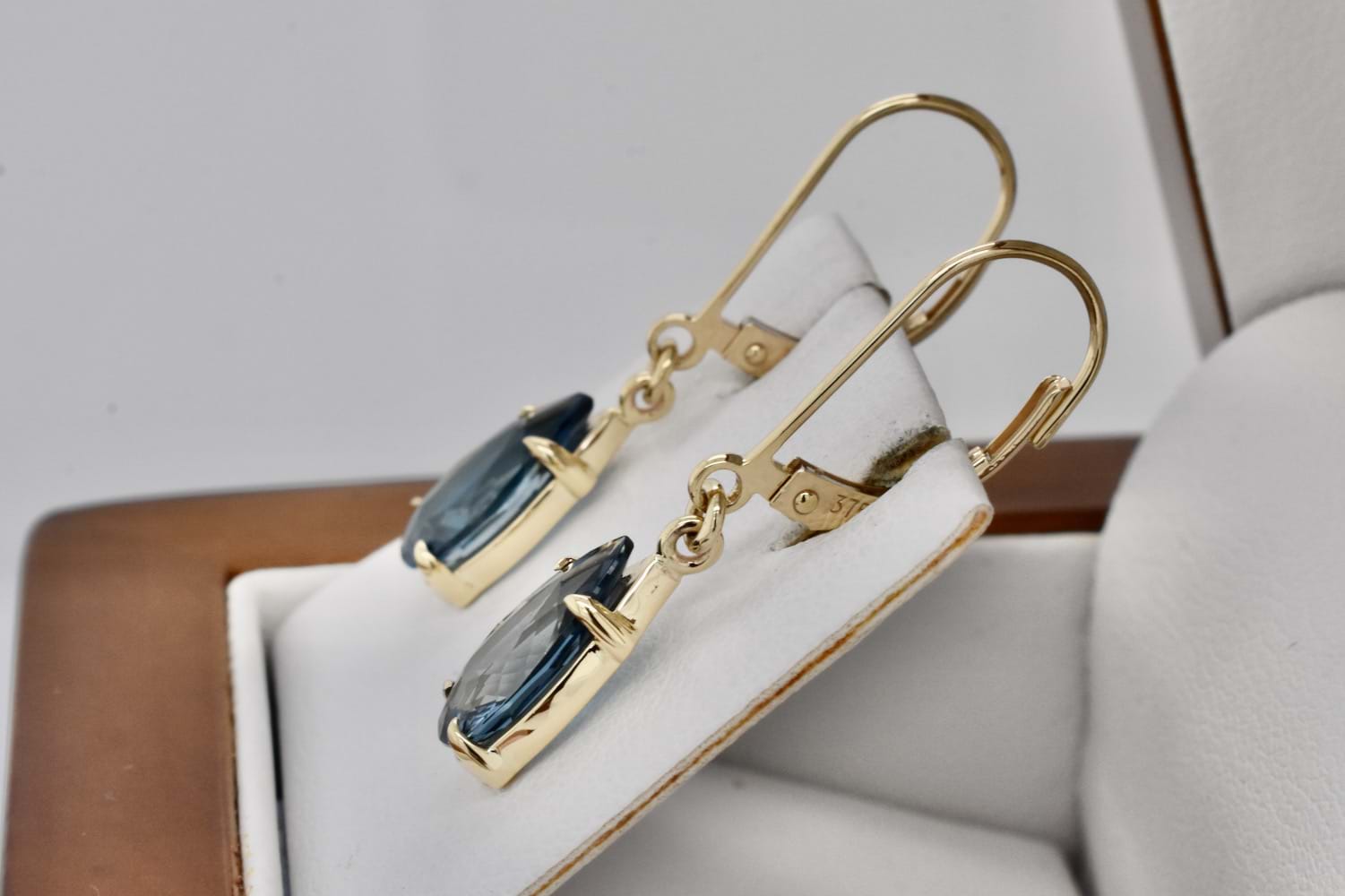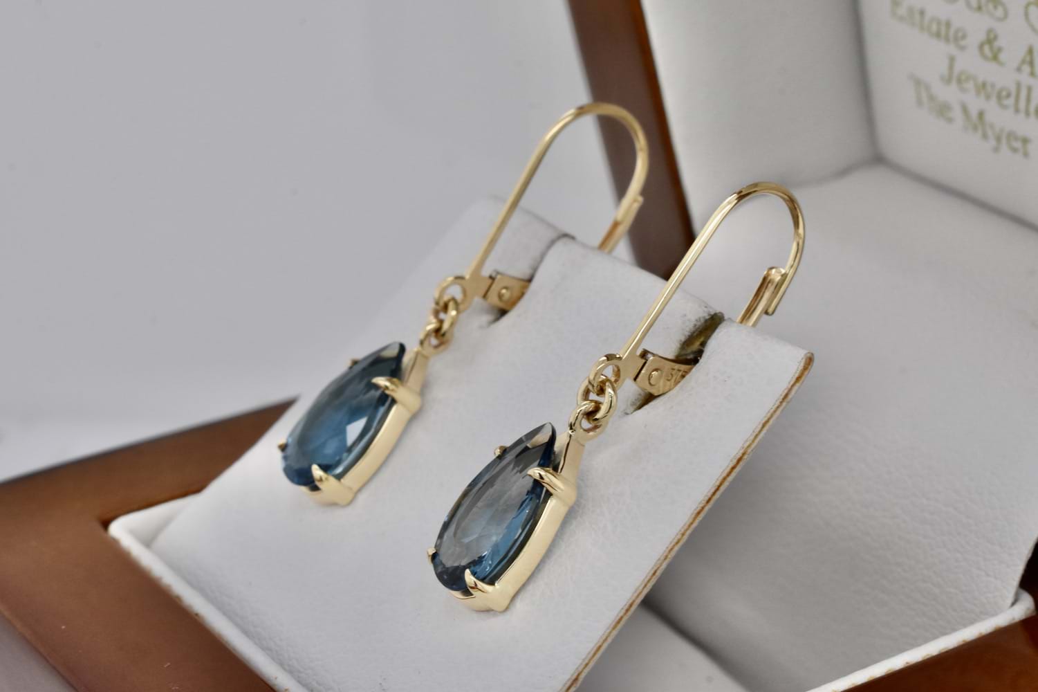 SOLD Handmade 9ct Yellow Gold Pearshape London Blue Topaz Drops