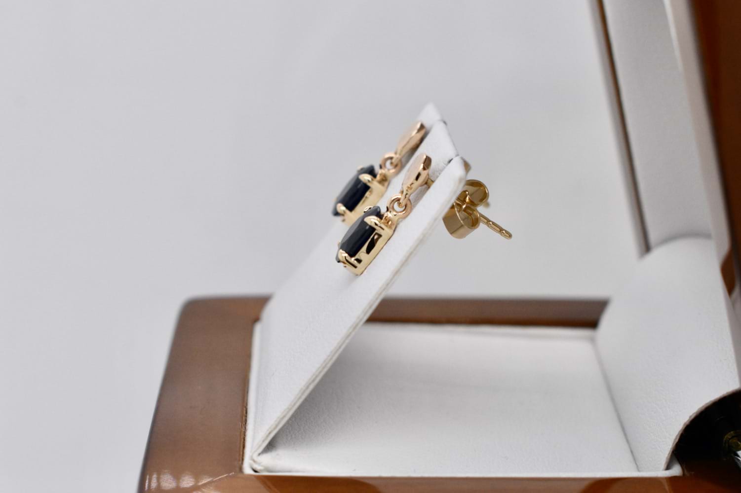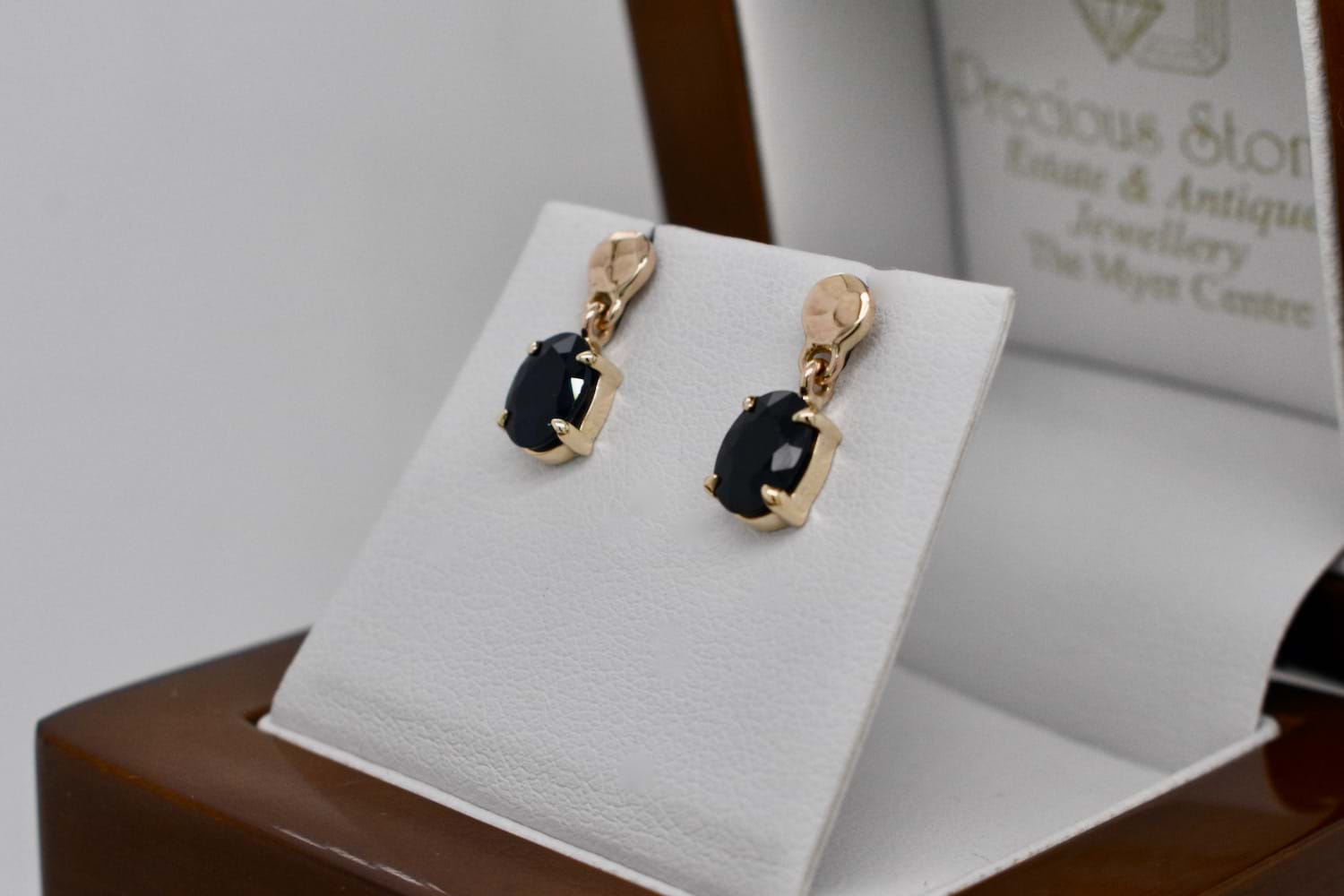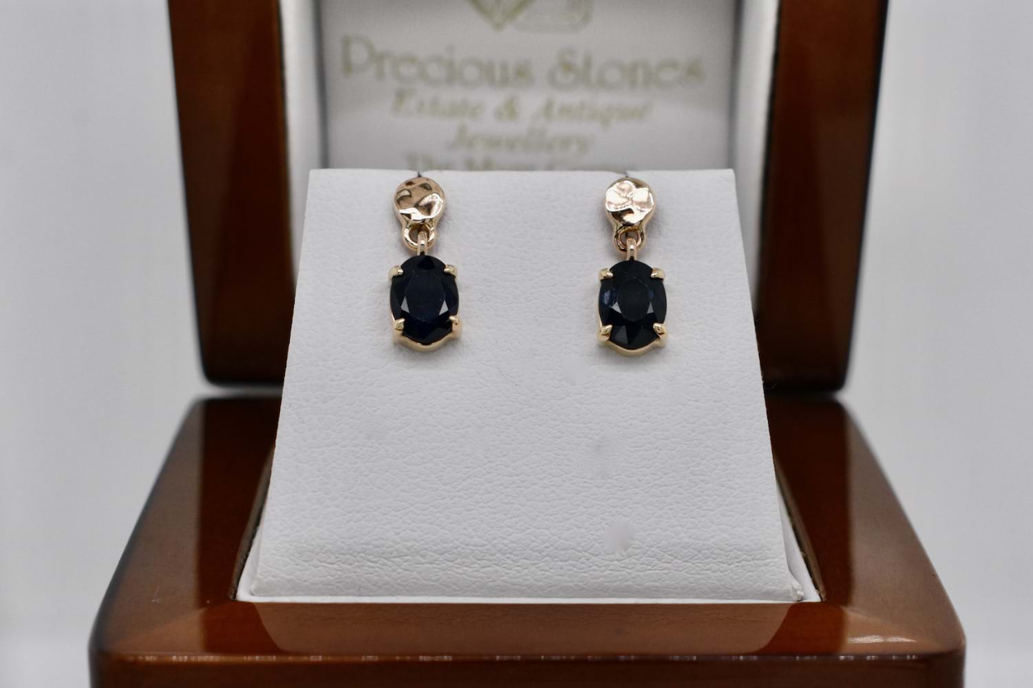 SOLD Handmade 9ct Yellow Gold Textured Stud & Sapphire Drop Earrings
