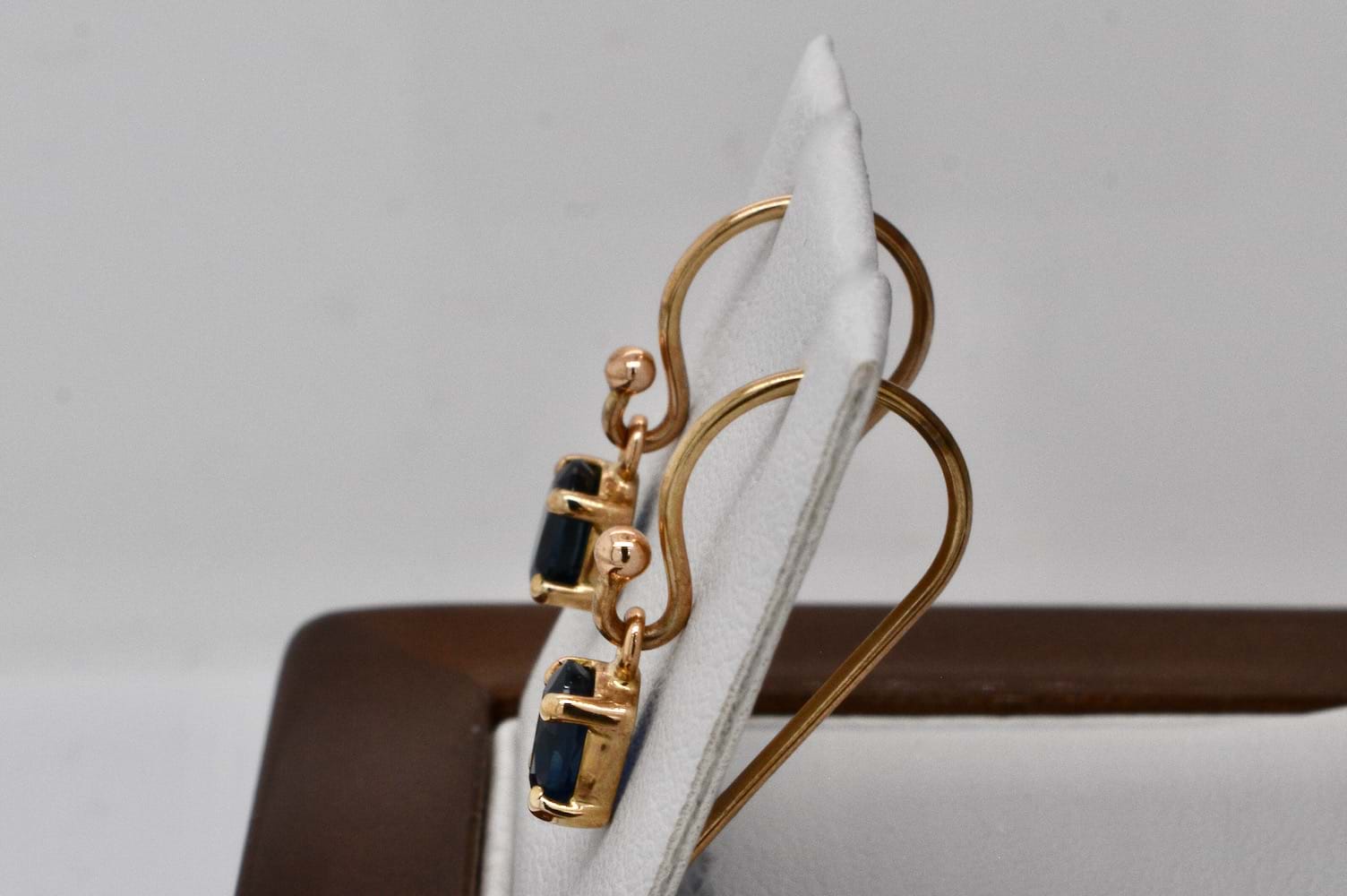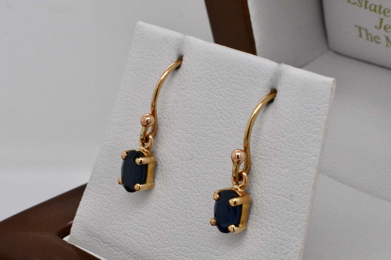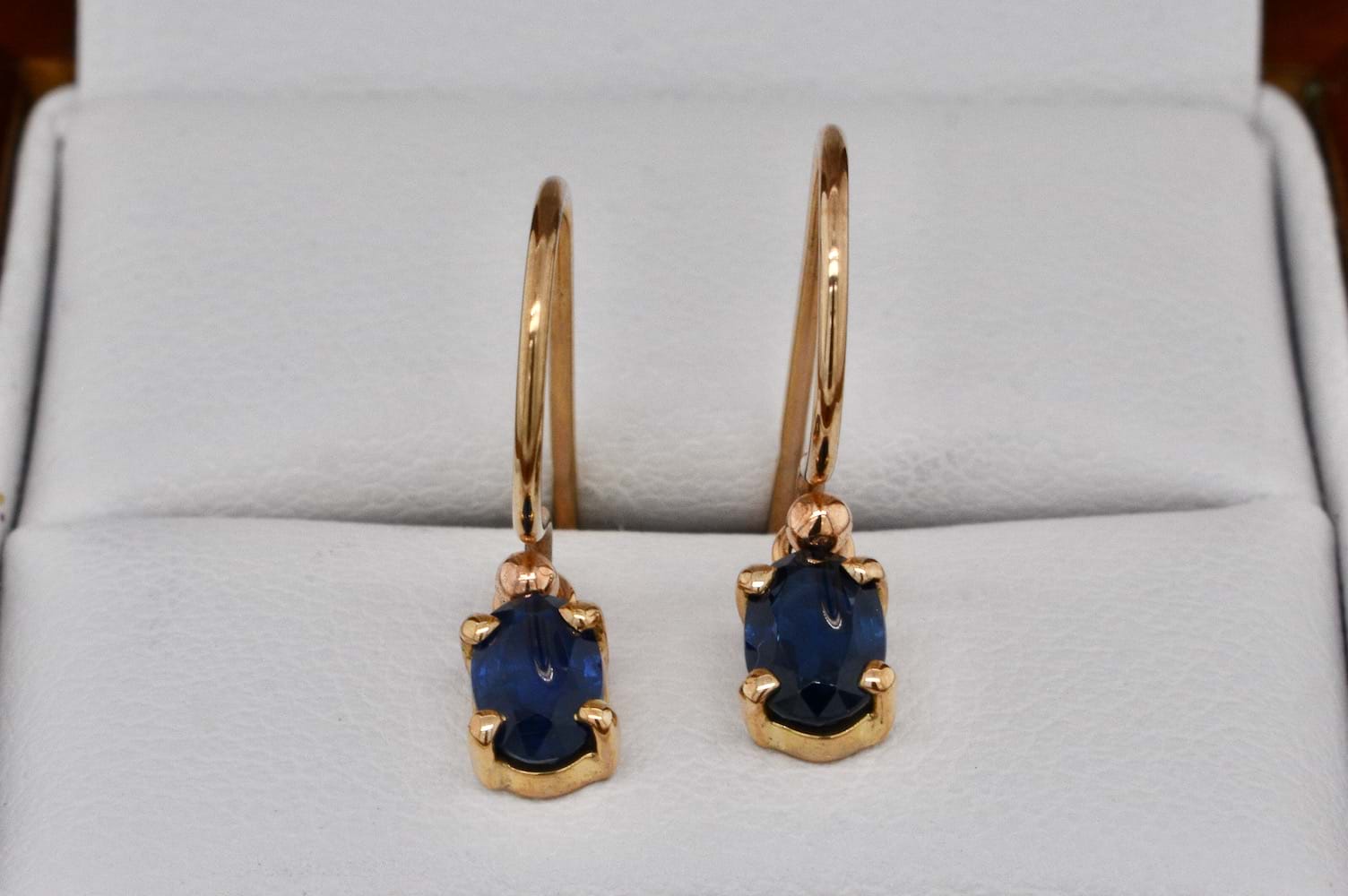 SOLD Handmade 9ct Yellow Gold Unheated Sapphire Drop Earrings