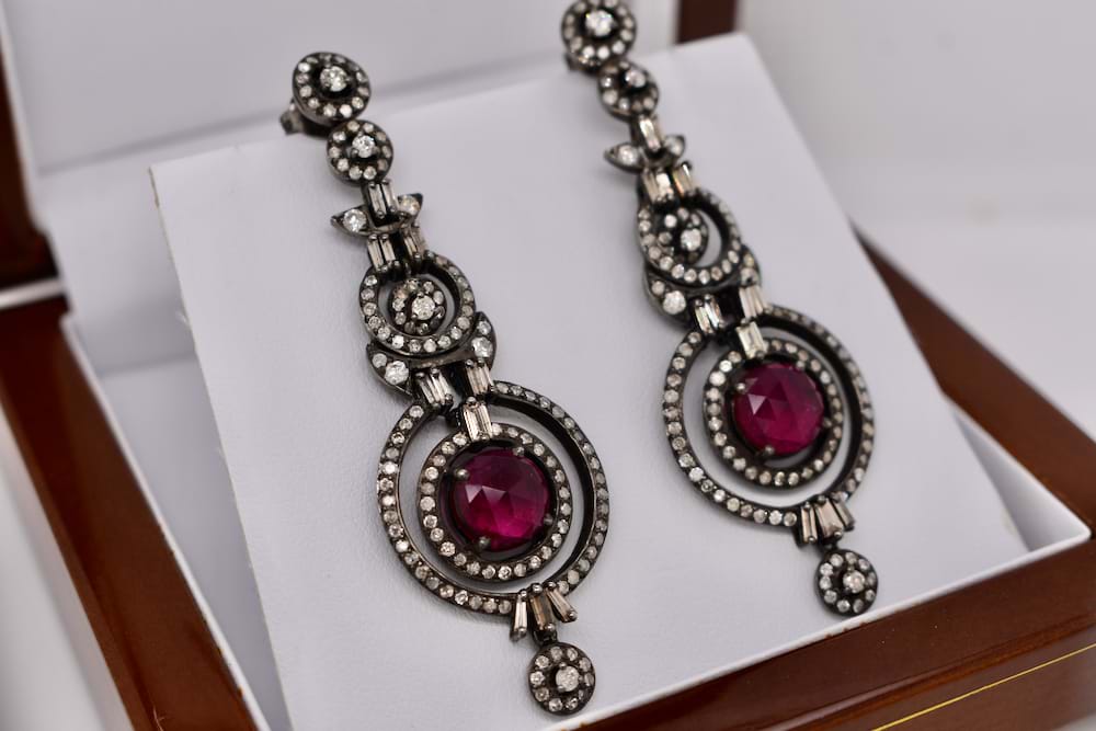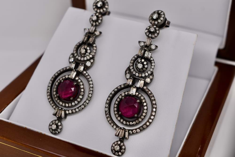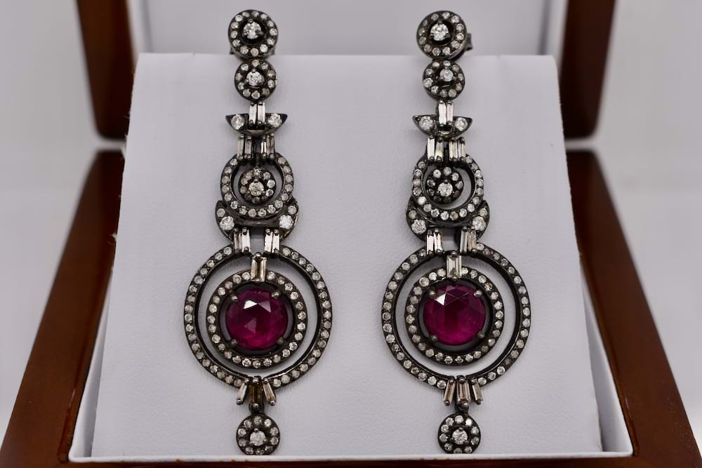 SOLD Silver & 14ct Rubelite Tourmaline & Diamond Earrings