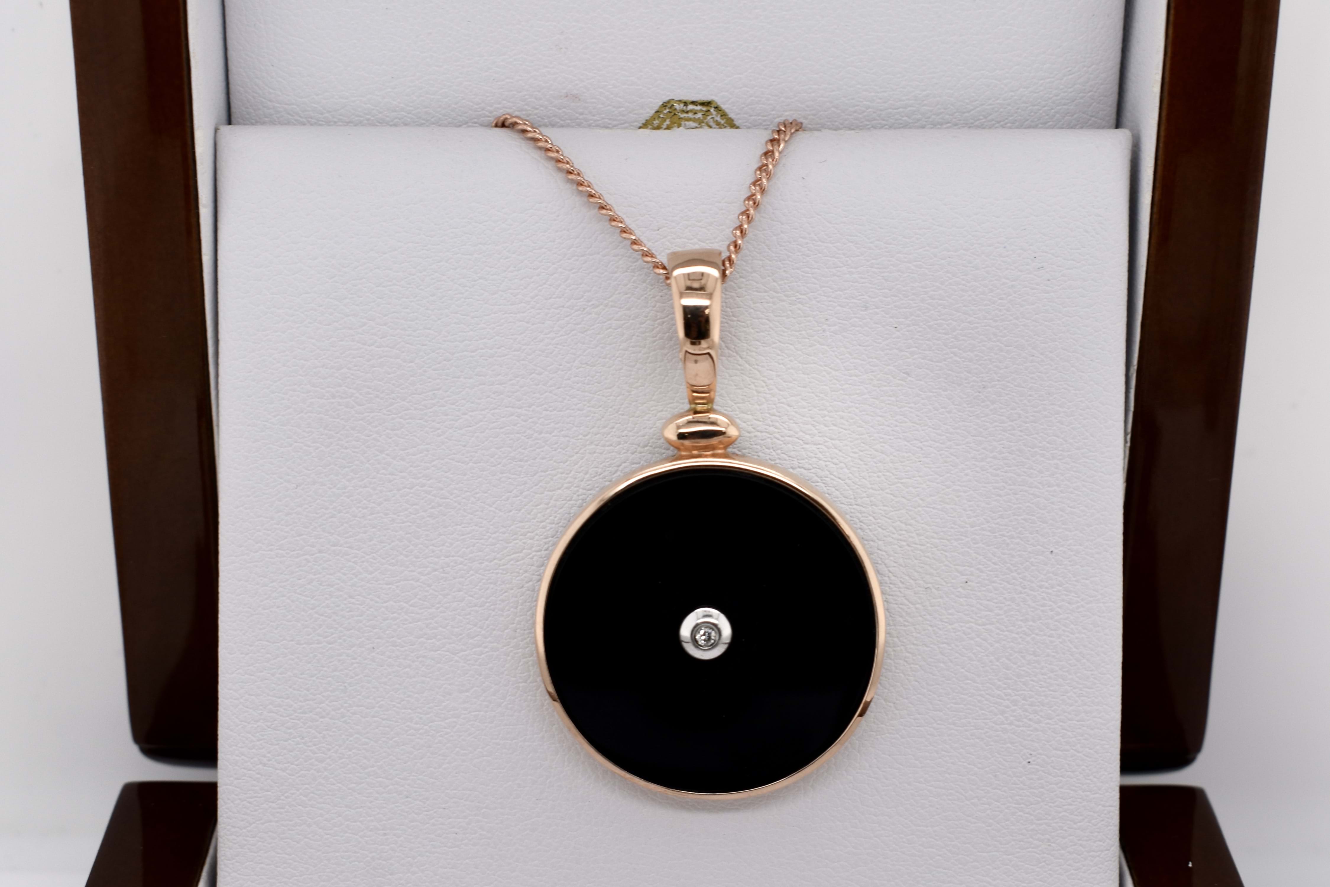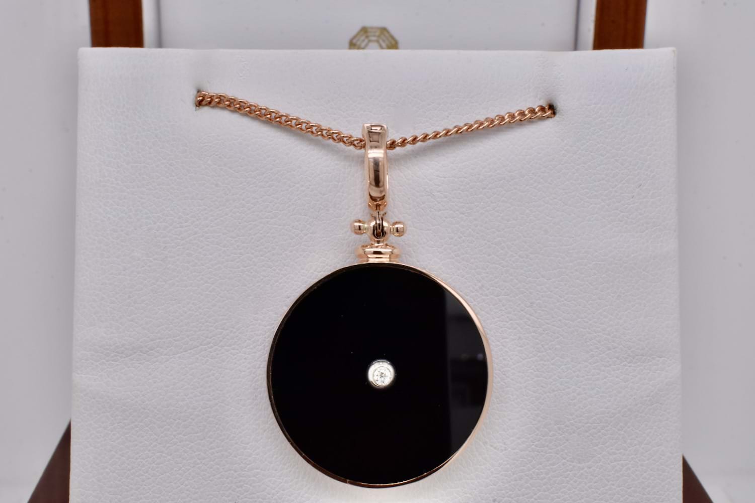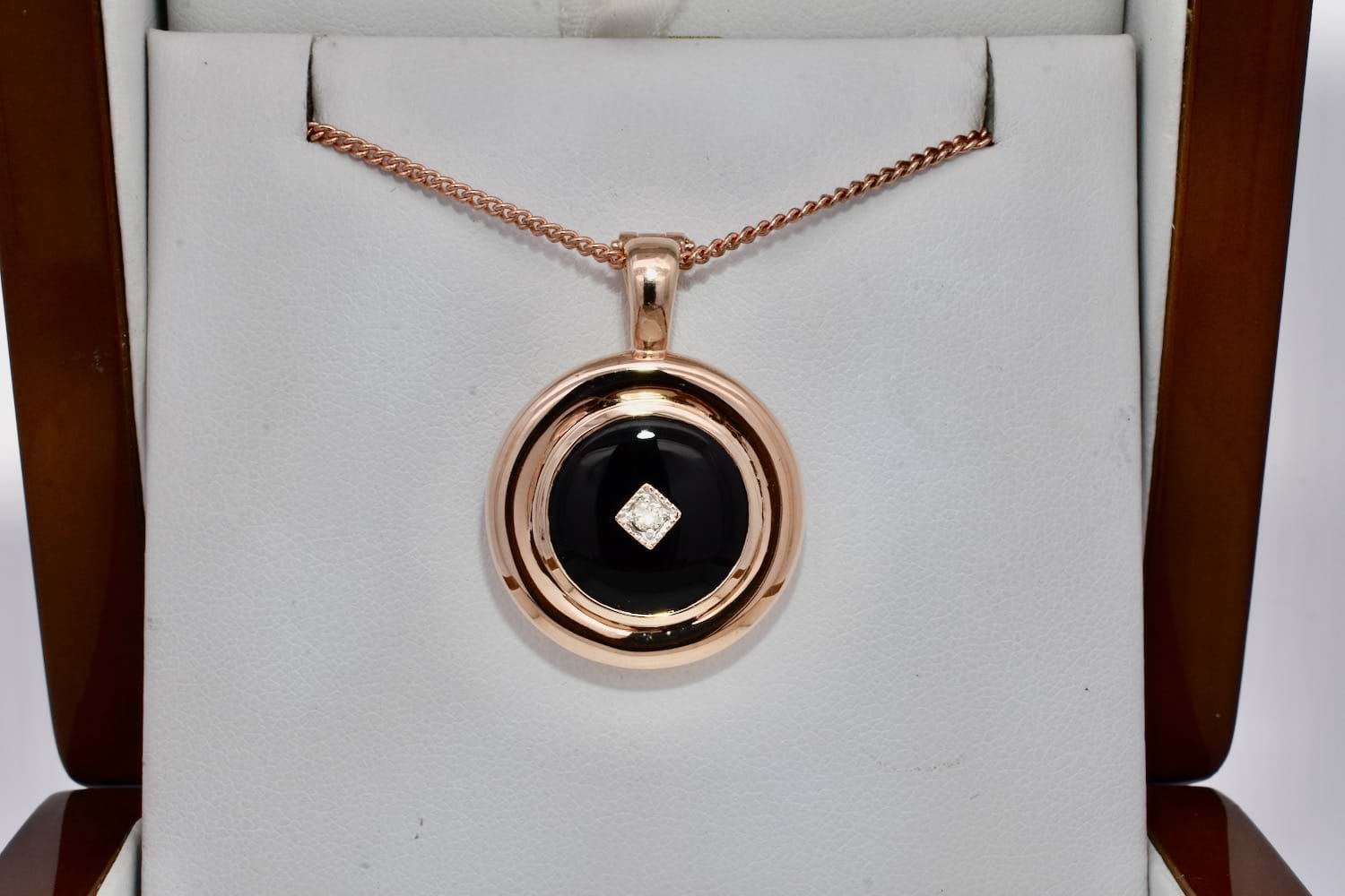 SOLD 9ct Rose Gold Round Onyx & Diamond Enhancer