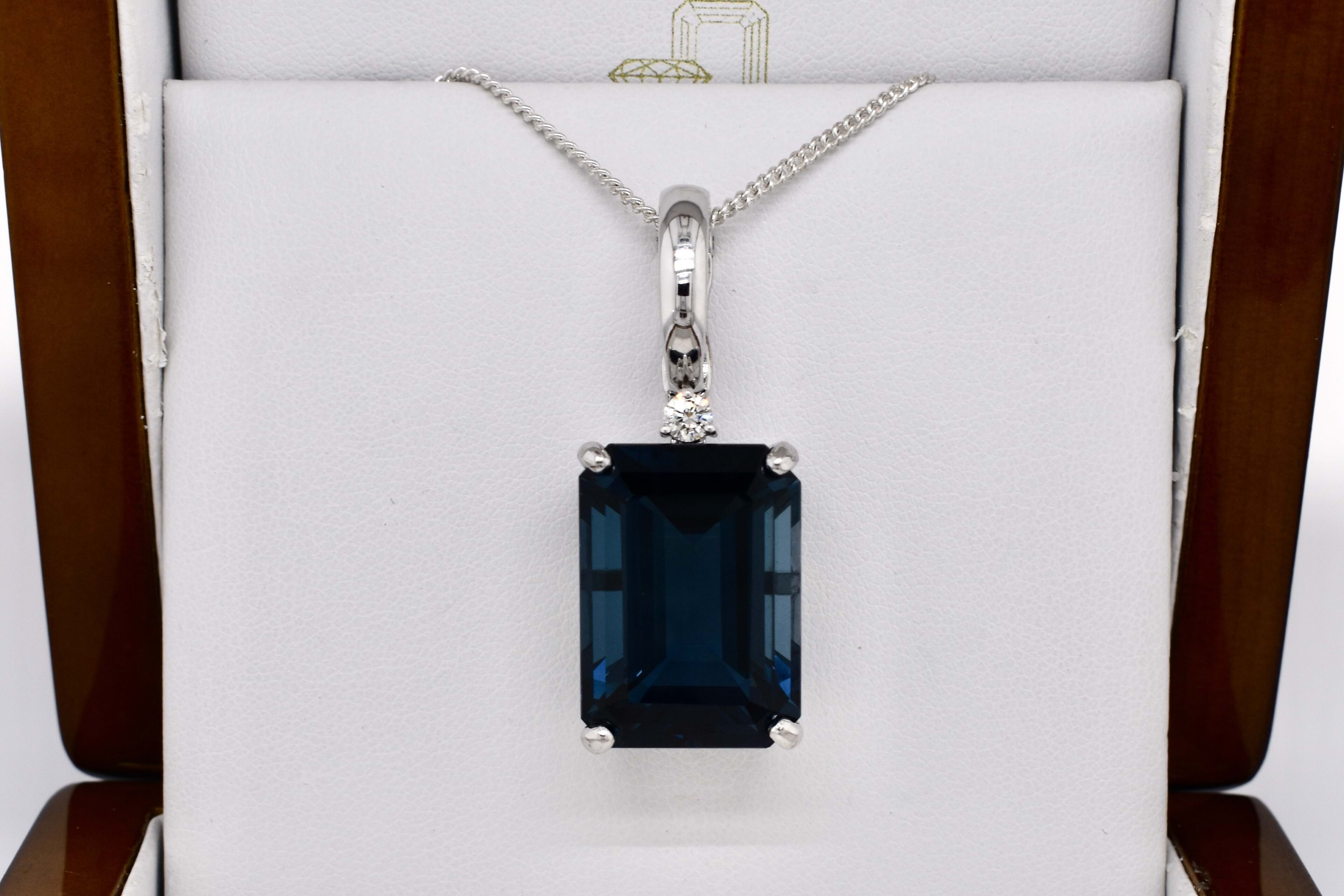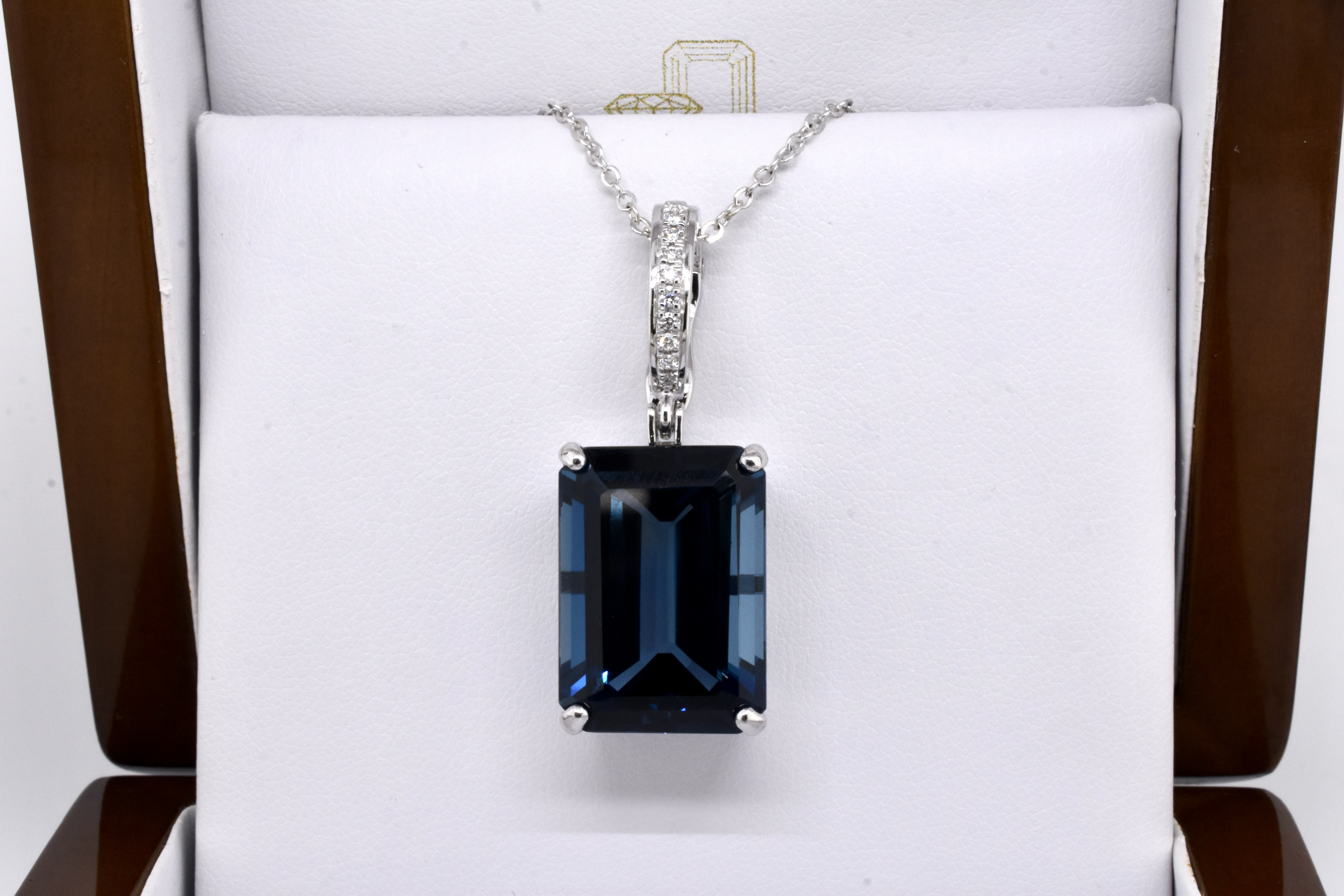 SOLD 9ct White Gold 37.49ct London Blue Topaz & Diamond Enhancer