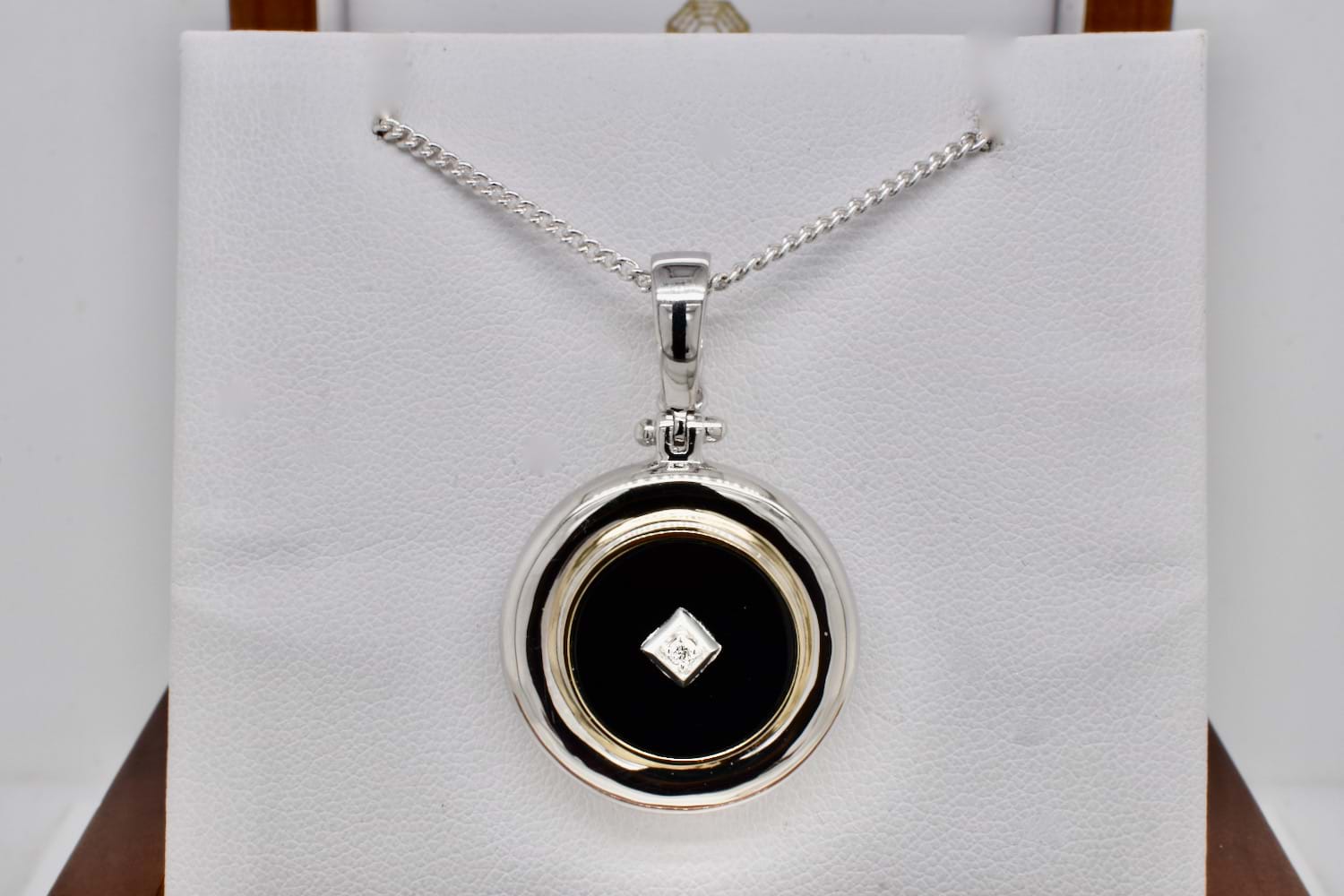 SOLD 9ct White Gold Onyx & 0.05ct Diamond Enhancer