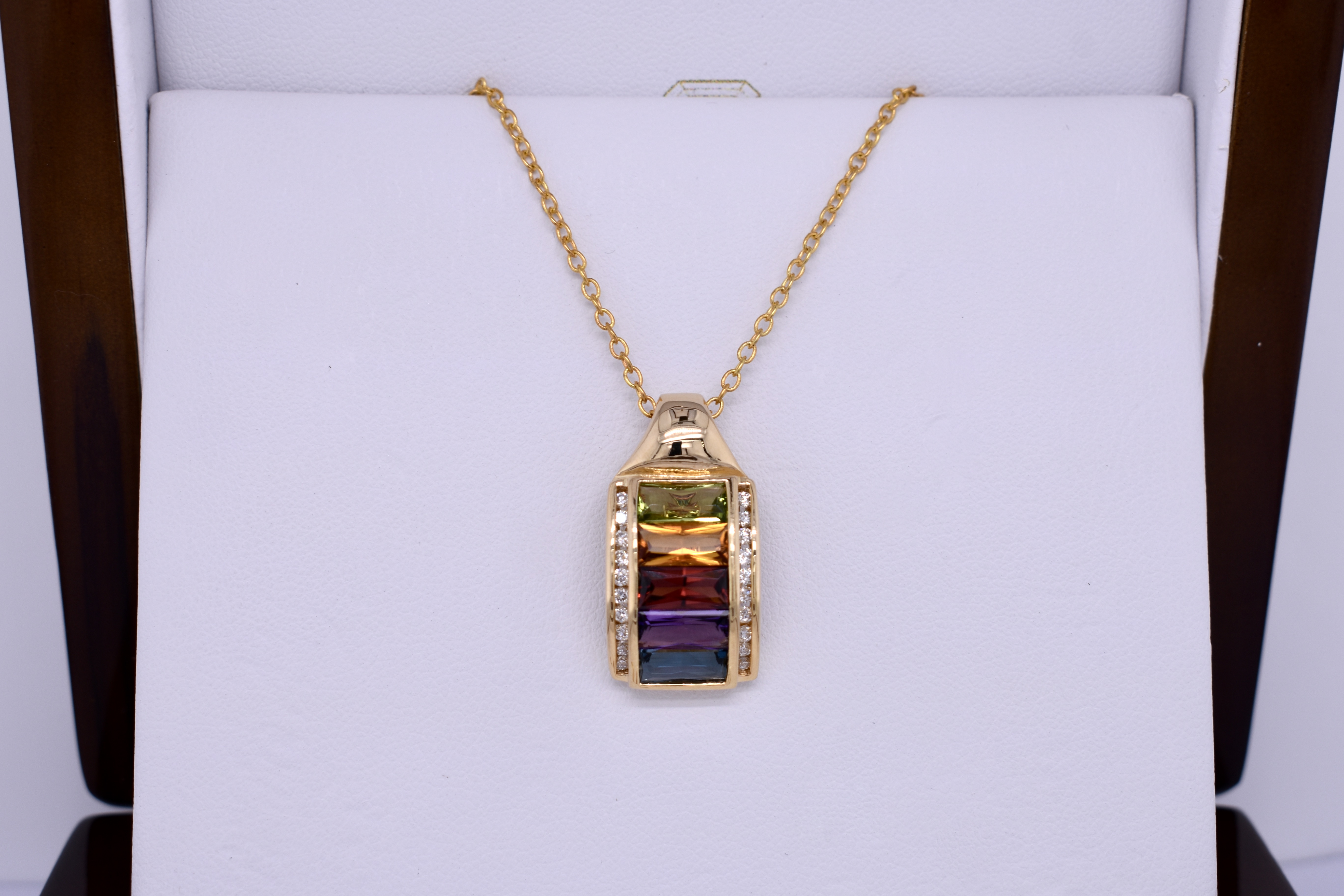 SOLD Vintage 18ct Yellow Gold Multi-Gemstone & 0.20ct Diamond Half Hoop Enhancer