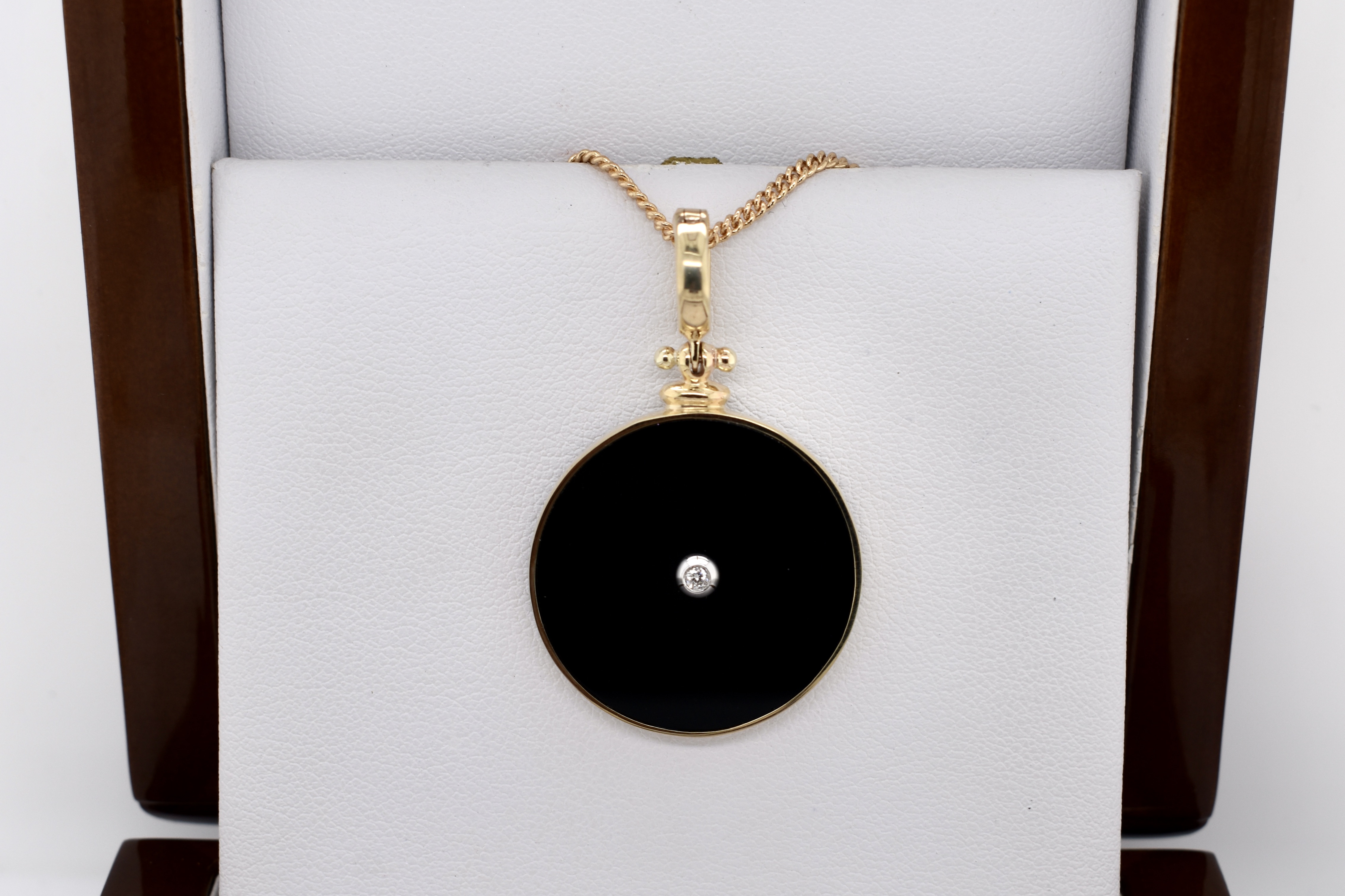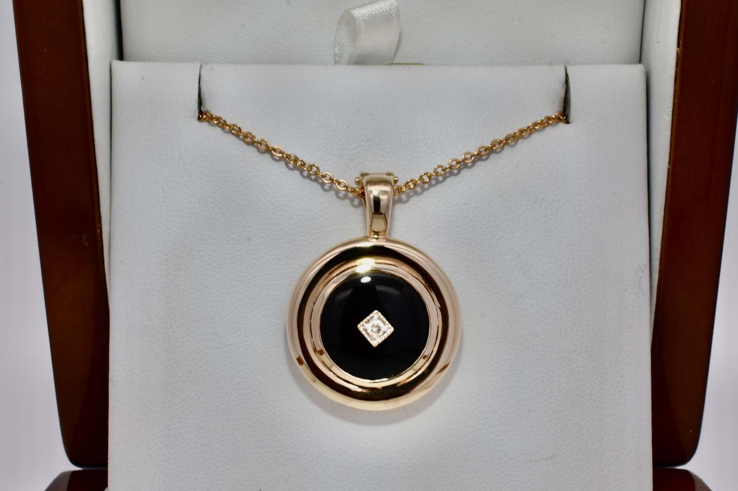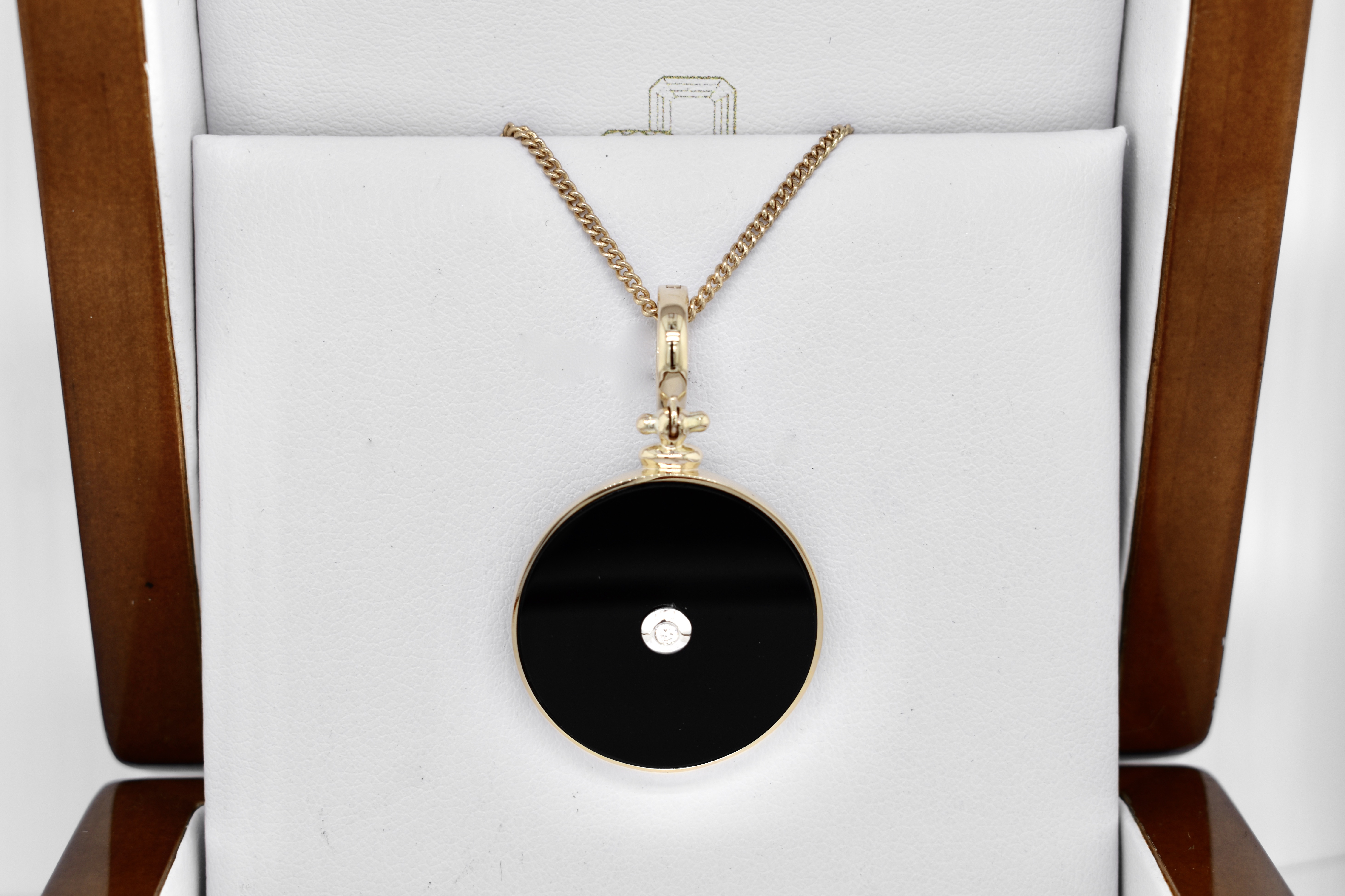 SOLD 9ct Yellow Gold Onyx & Diamond Round Enhancer
