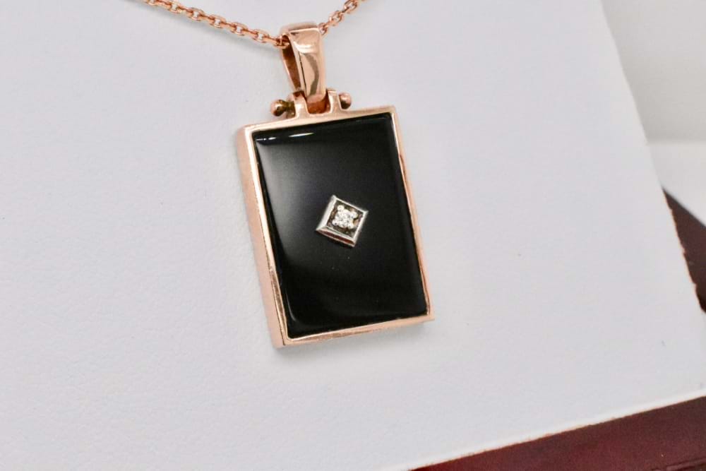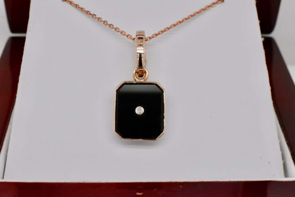 SOLD 9ct Rose Gold Rectangular Onyx & Diamond Enhancer