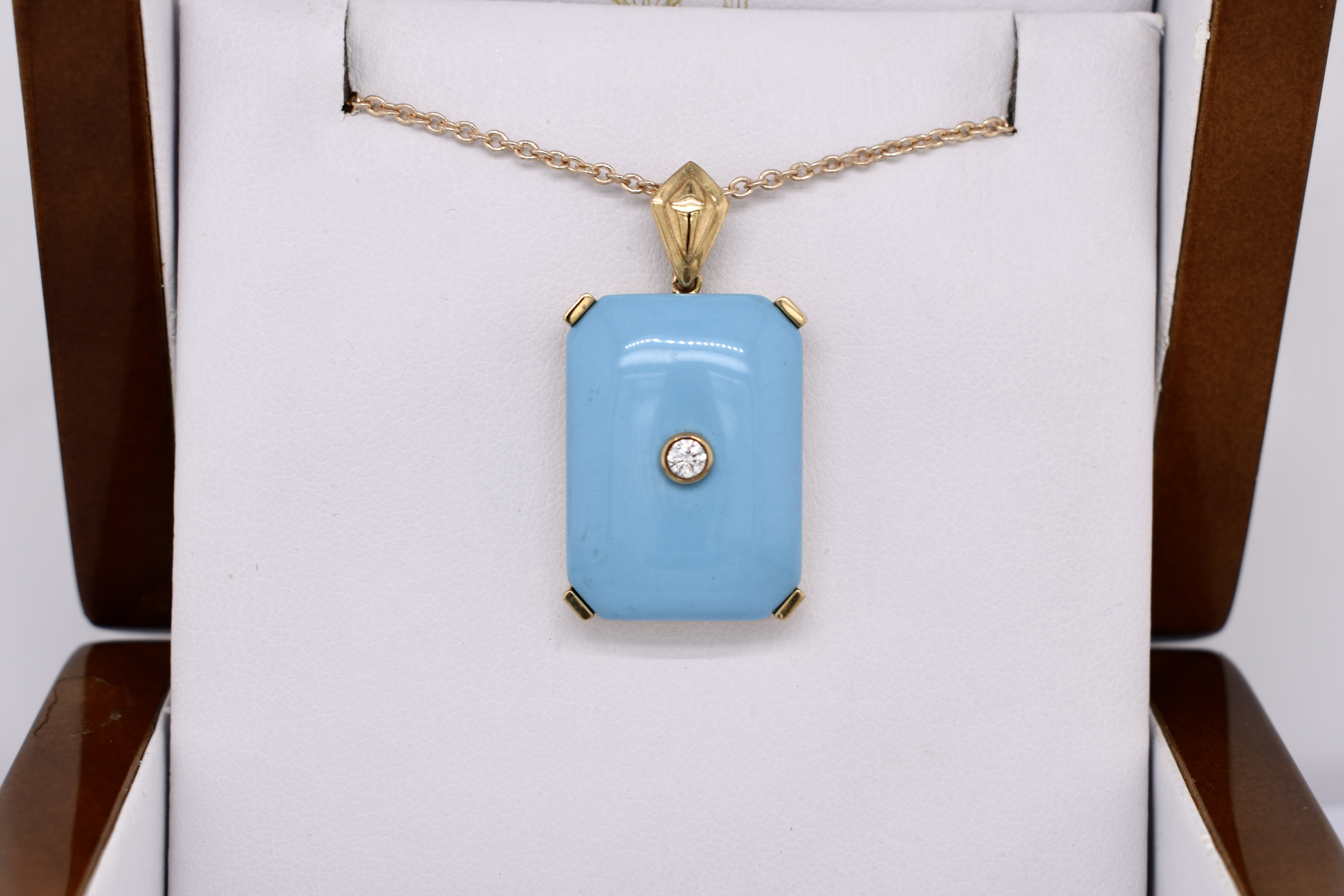 SOLD 9ct Yellow Gold Emerald Cut Turquoise & 0.10ct Diamond Enhancer