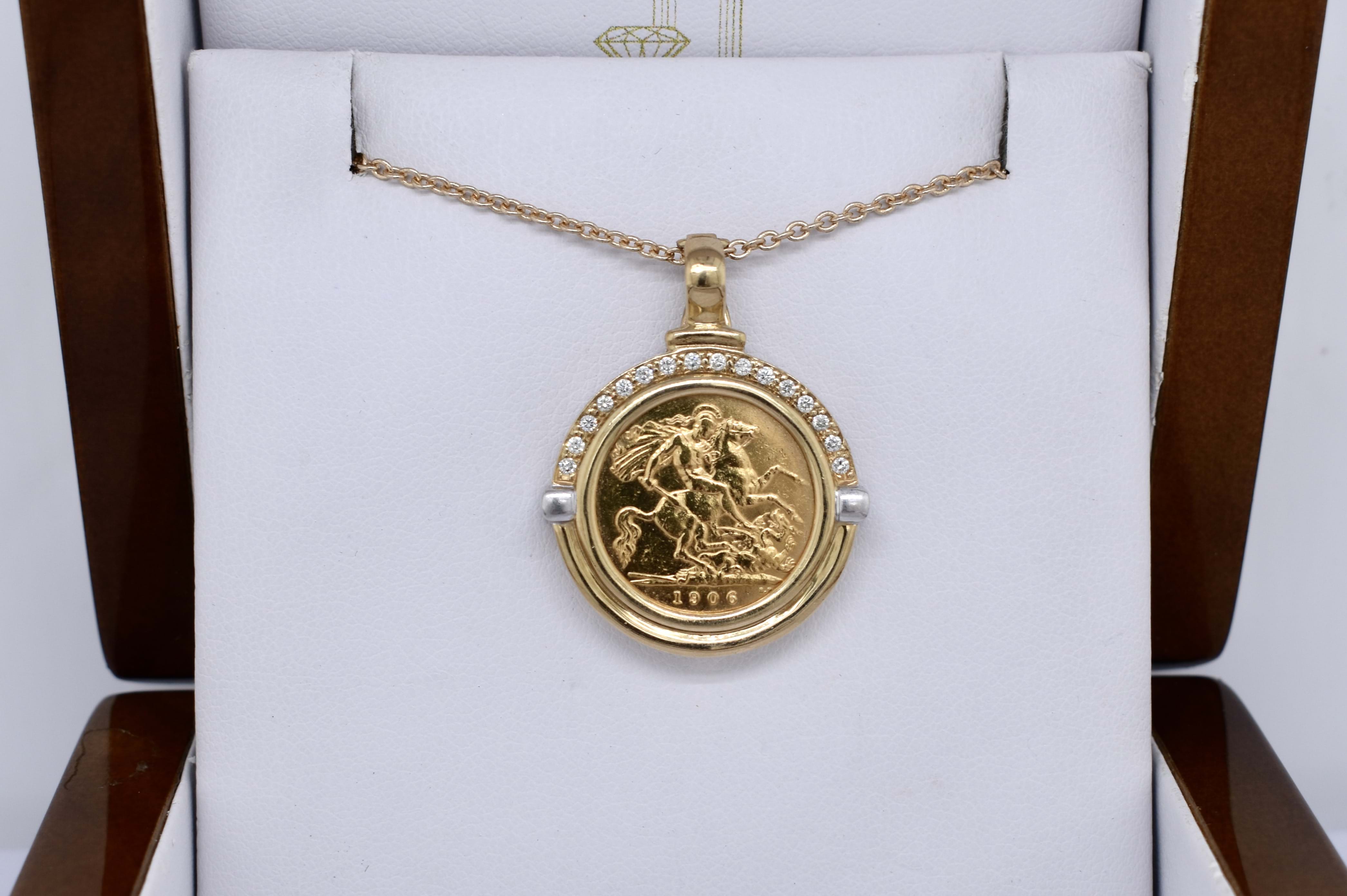SOLD 9ct Yellow Gold 0.16ct Diamond Coin Frame Enhancer & 22ct Half Sovereign Coin 1906