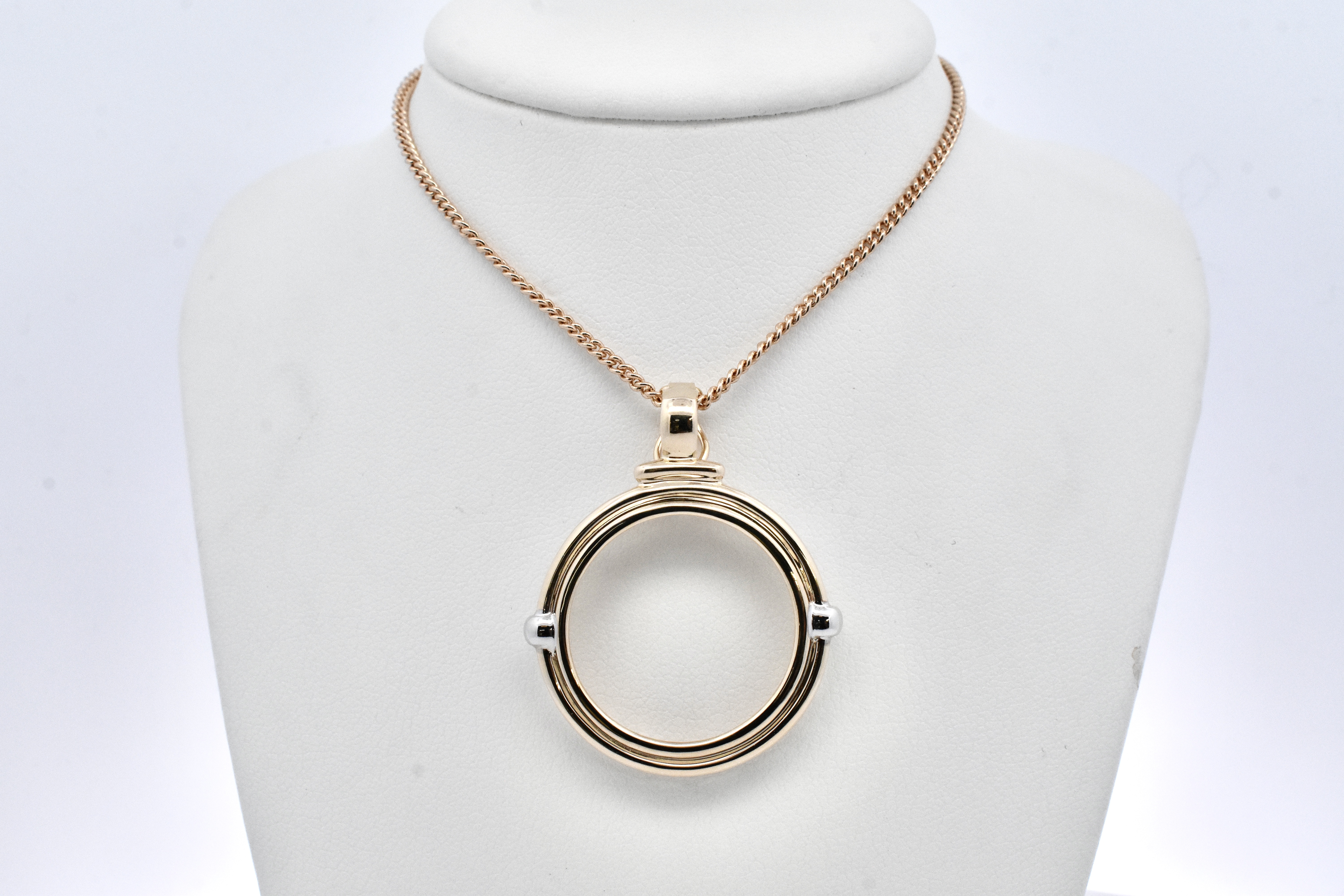 SOLD 9ct Yellow & White Gold Two Tone Full Sovereign Coin Mount Enhancer