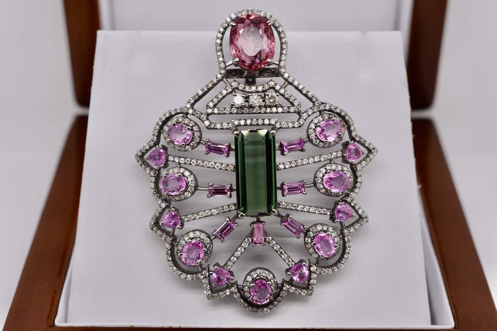 SOLD Sterling Silver Green Tourmaline, Pink Sapphire & Diamond Enhancer
