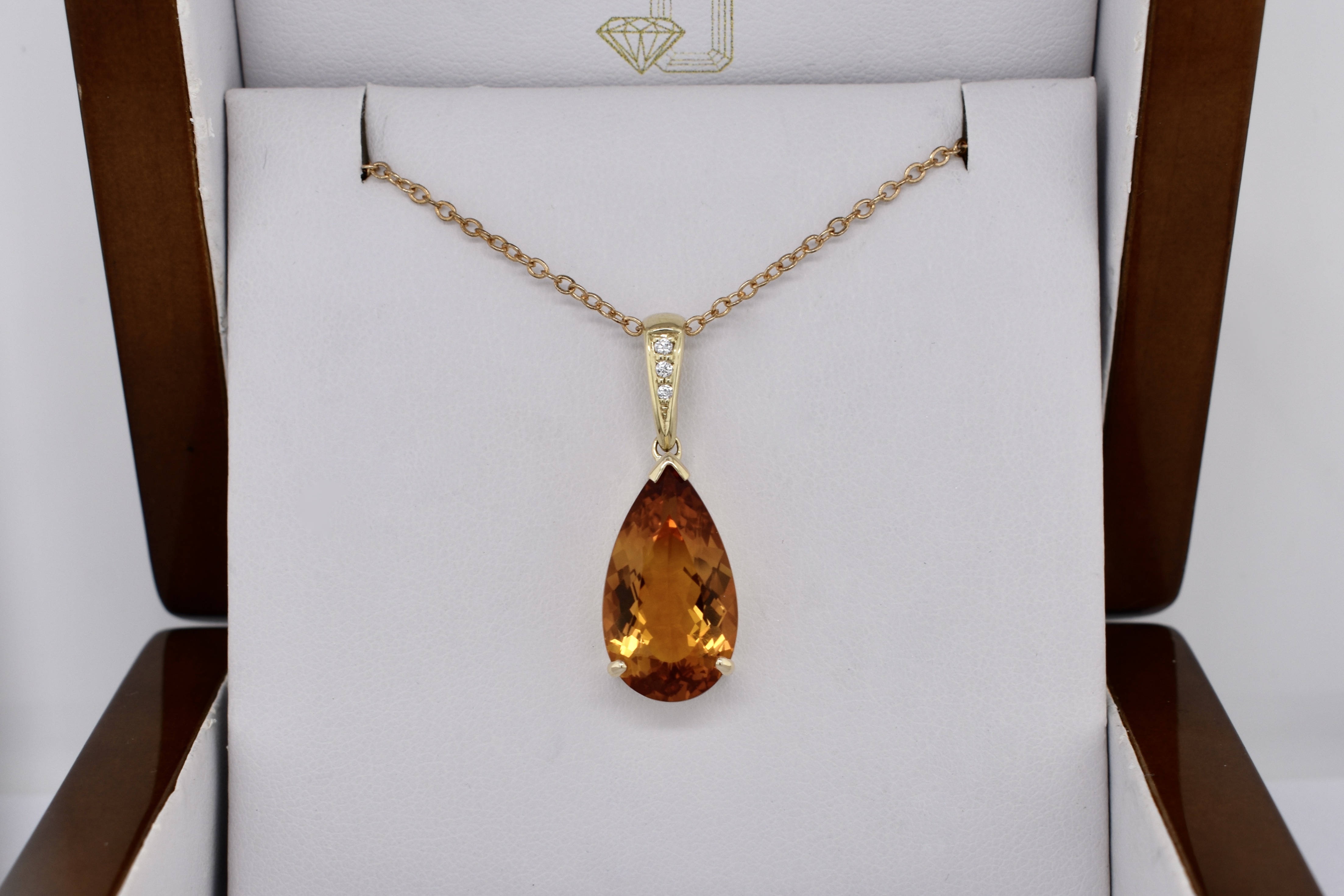 SOLD 9ct Yellow Gold Pear Shaped Citrine & 0.03ct Diamond Enhancer