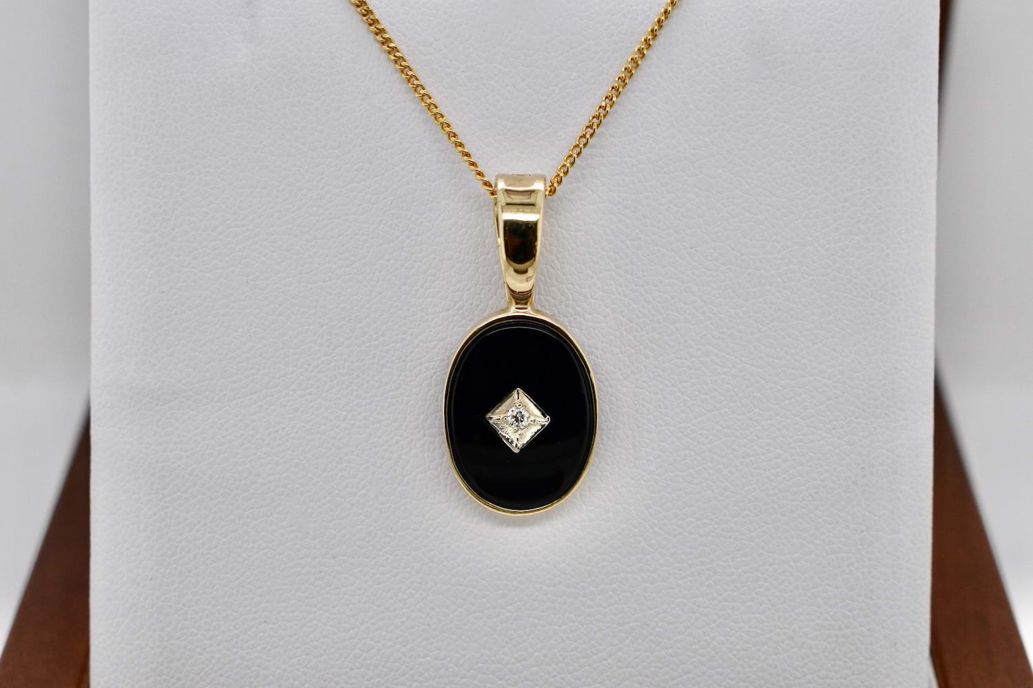 SOLD 9ct Yellow Gold 0.35ct Diamond & Onyx Enhancer